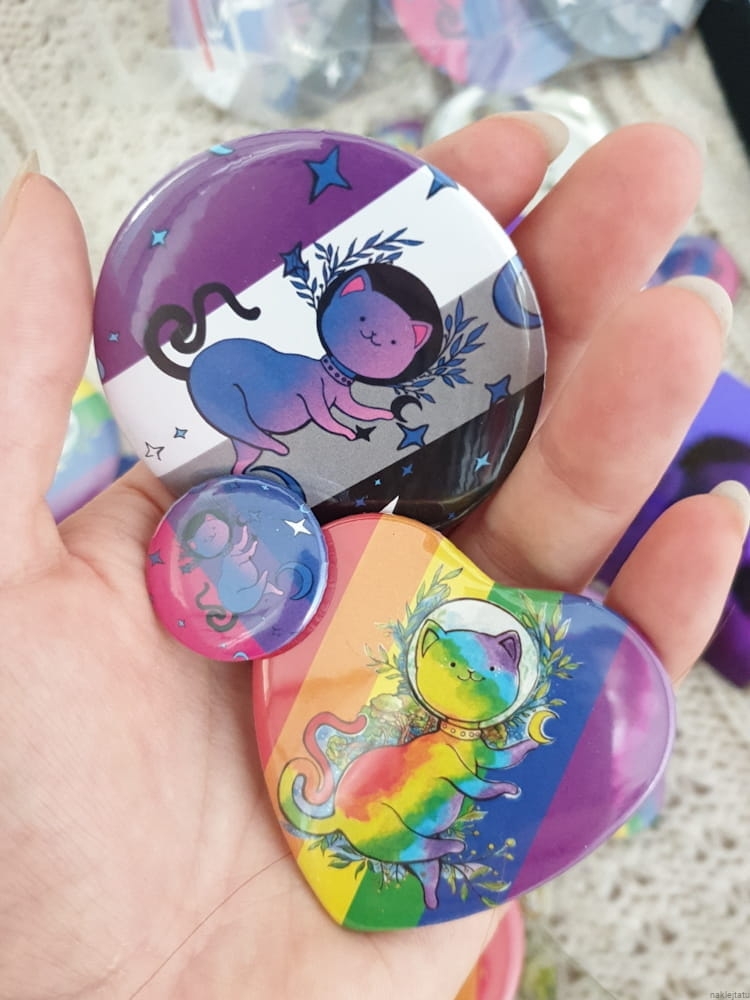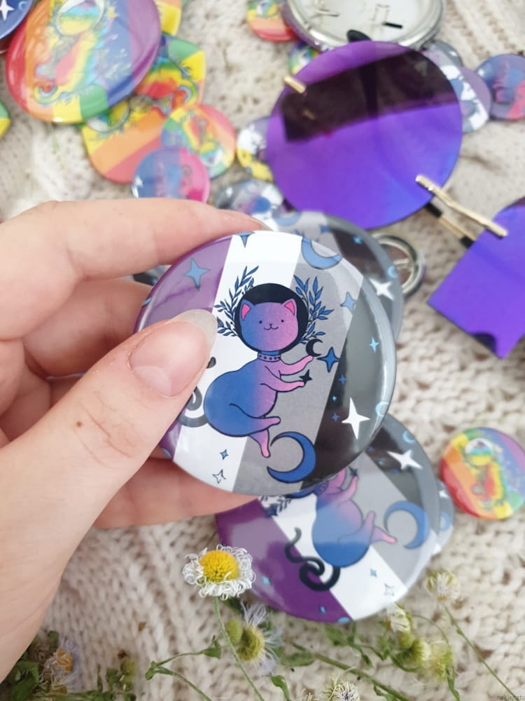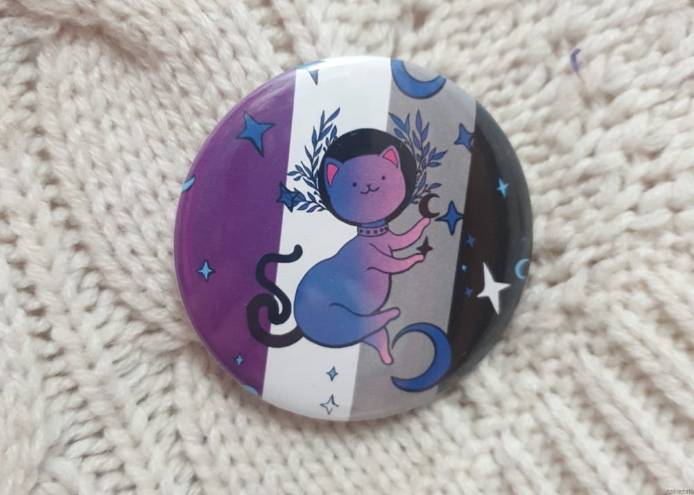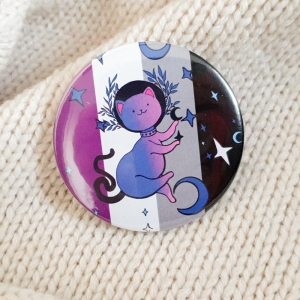 Asexual flag with cat on a button