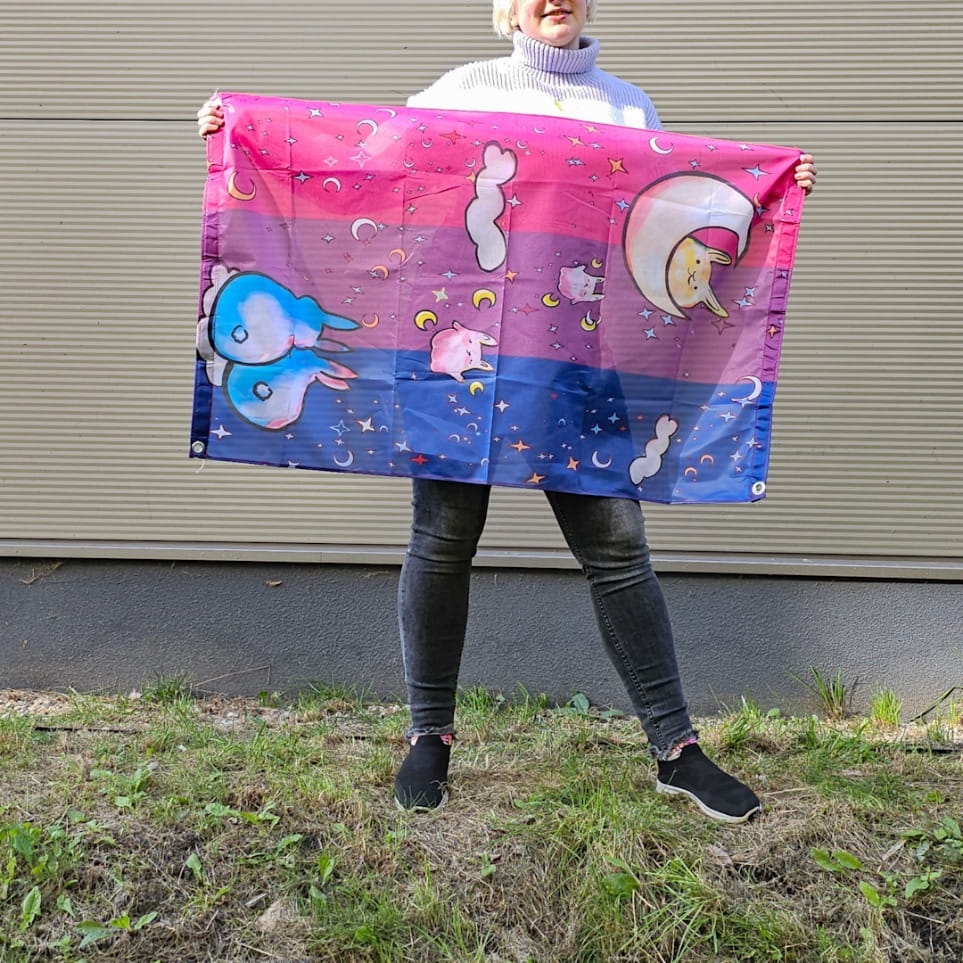 Super cute and new bisexual flag with bunnies.