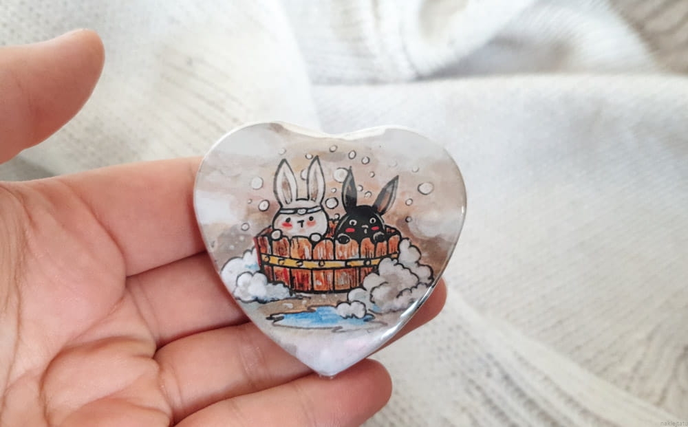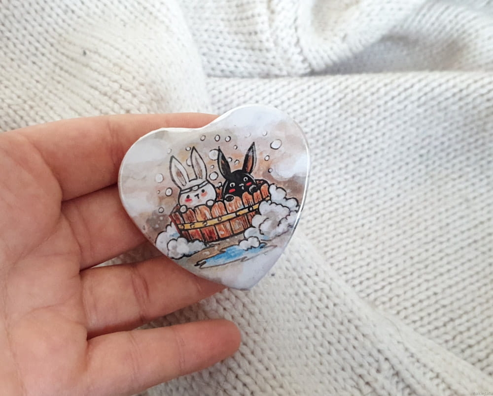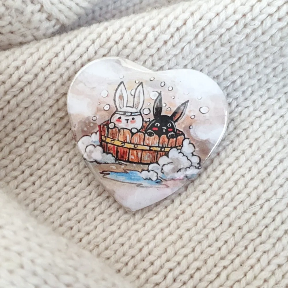Did you know that tote bags can feel lonely without at least a few nice buttons or pins? Make it happier with this cute bunny bath button.