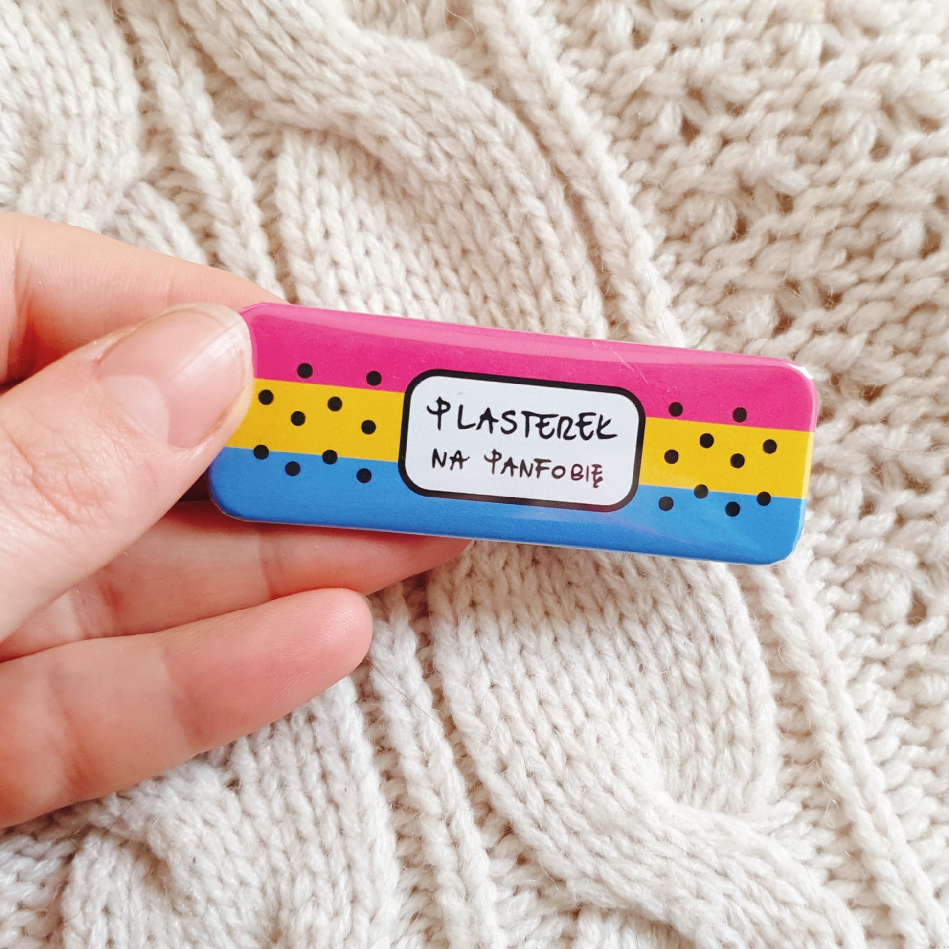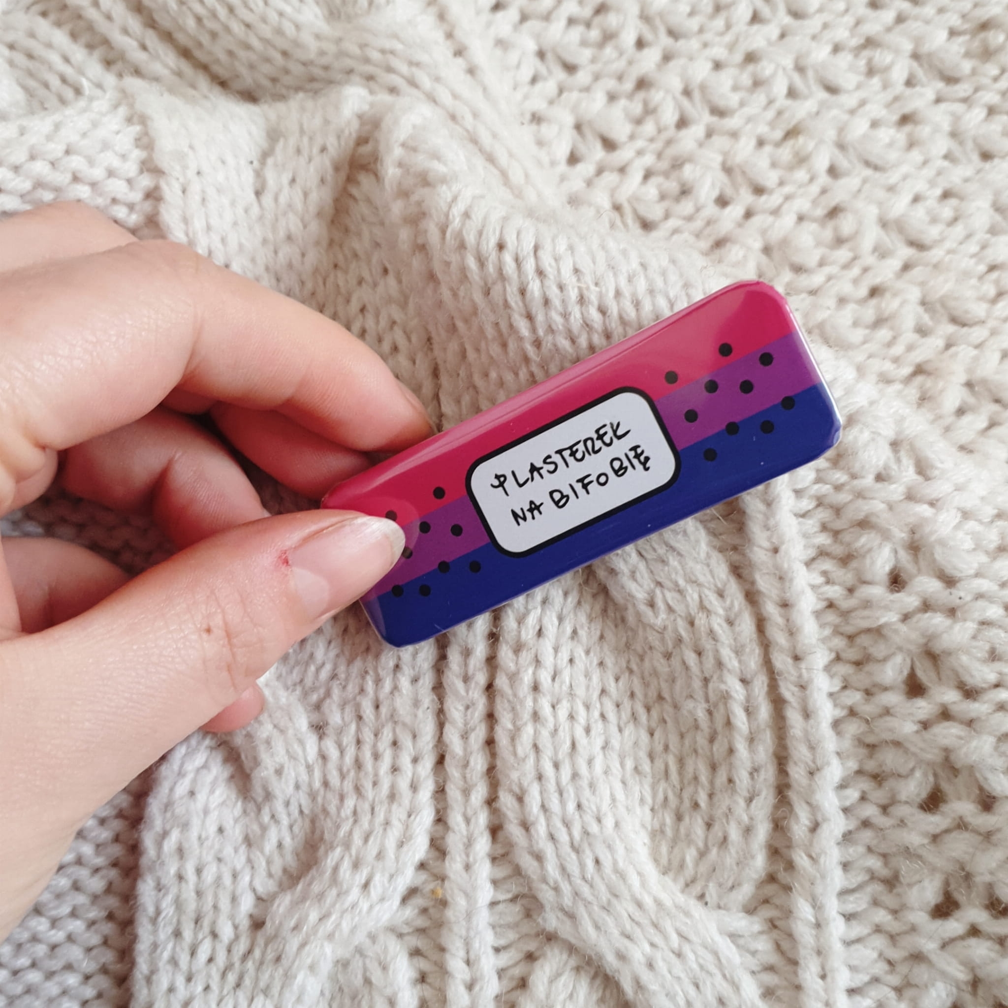 Button Plasterek na bifobię. 75x25 mm, aluminum, plastc and paper. Be careftul and keep away from children- sharp elements.