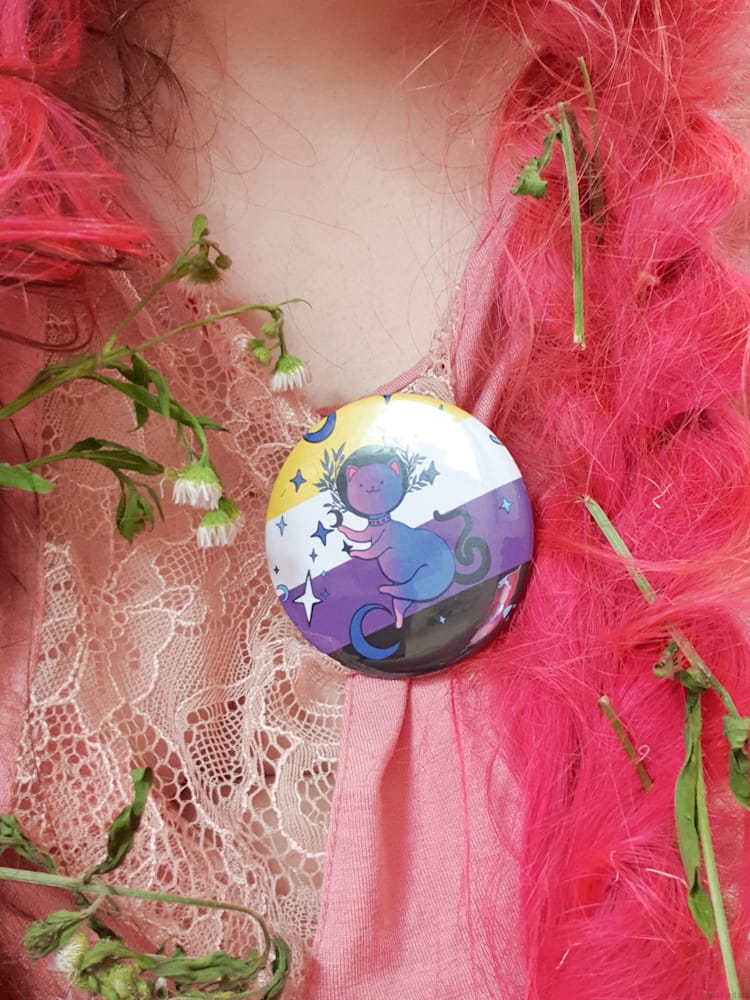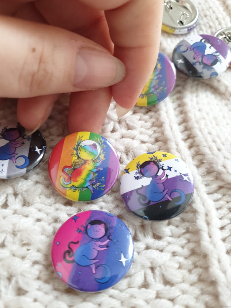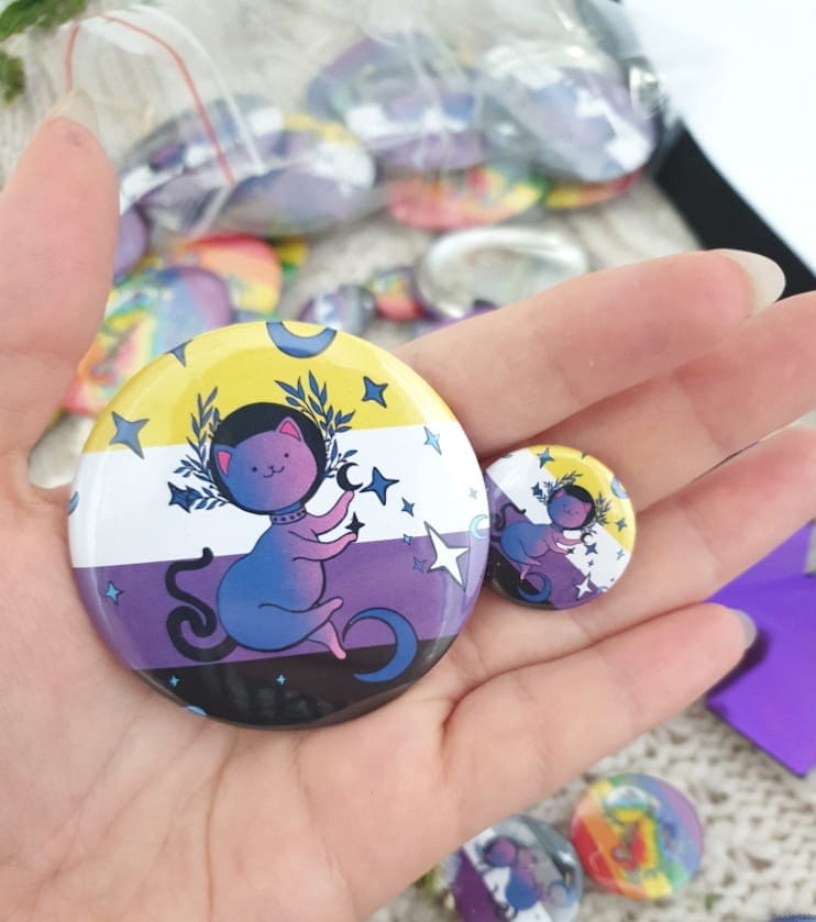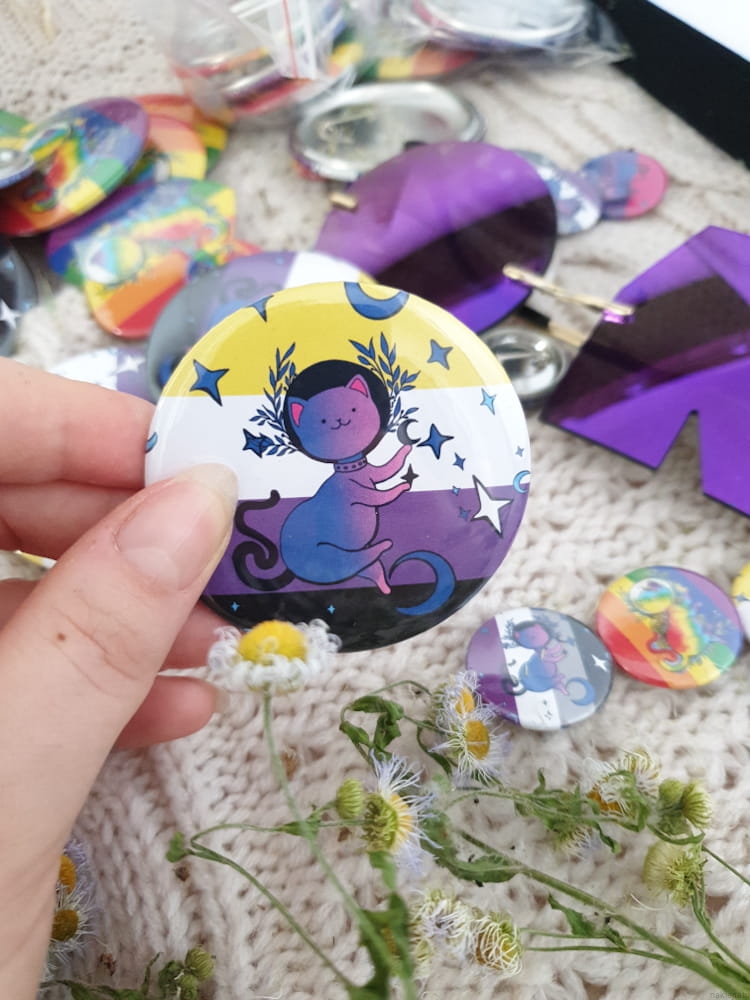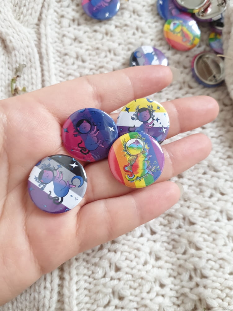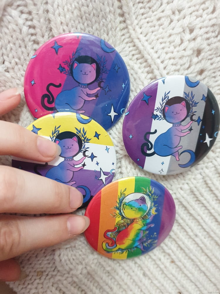 Cats and pride flags on buttons - rainbow, bi, les and more (1)