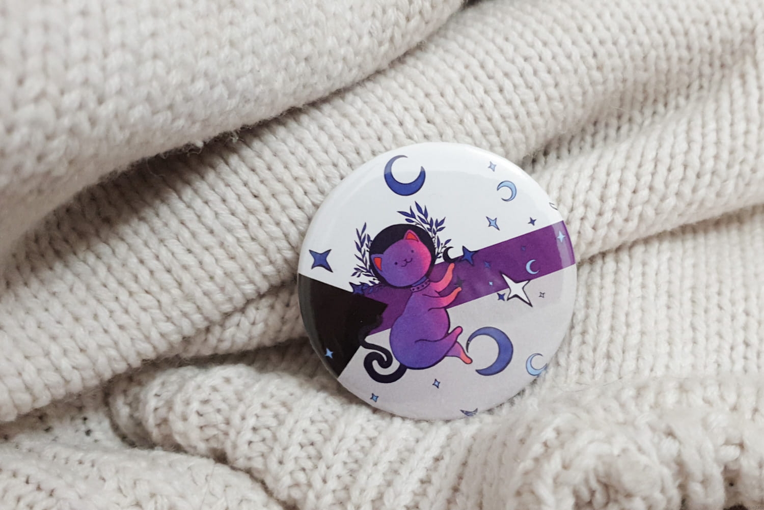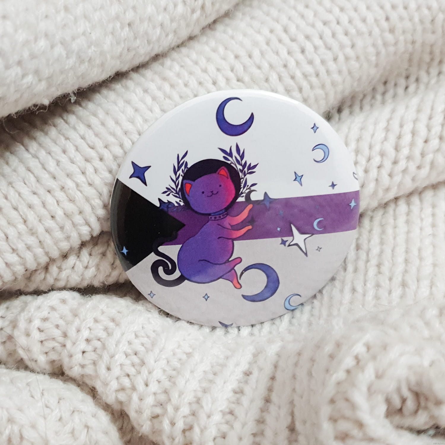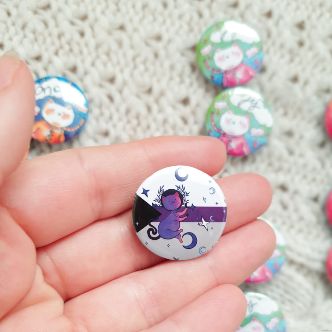 Demisexual flag with cat on a button
