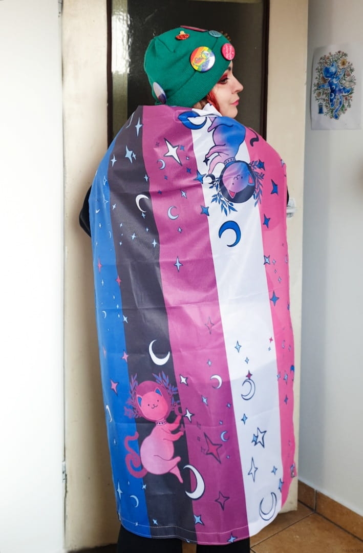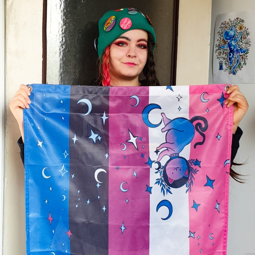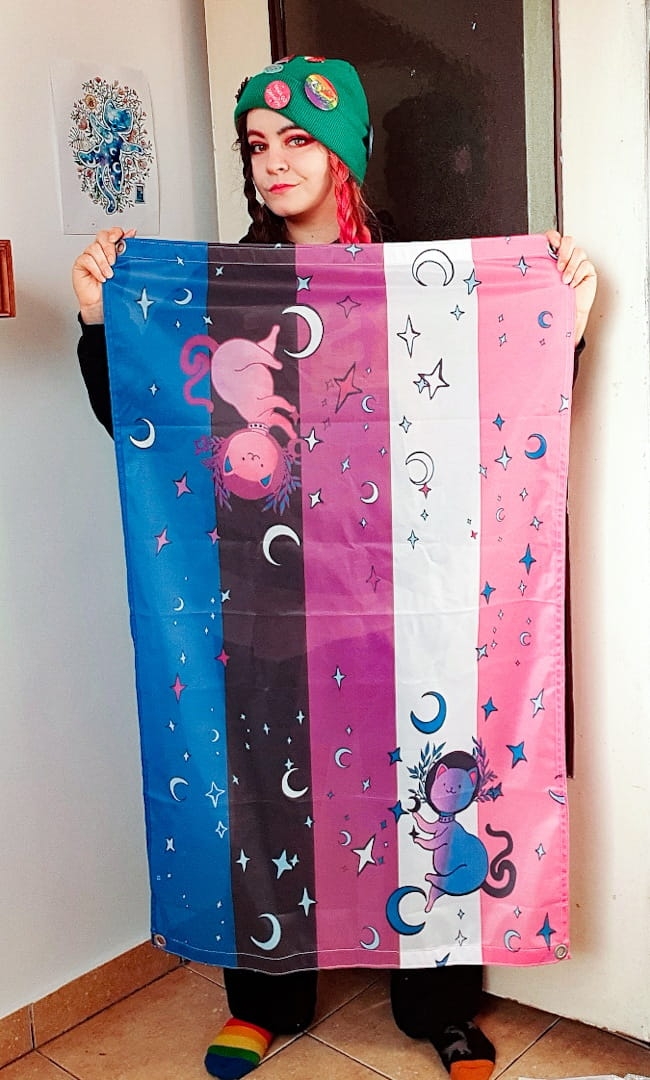 Genderfluid pride flag with a cat (ready to ship)
