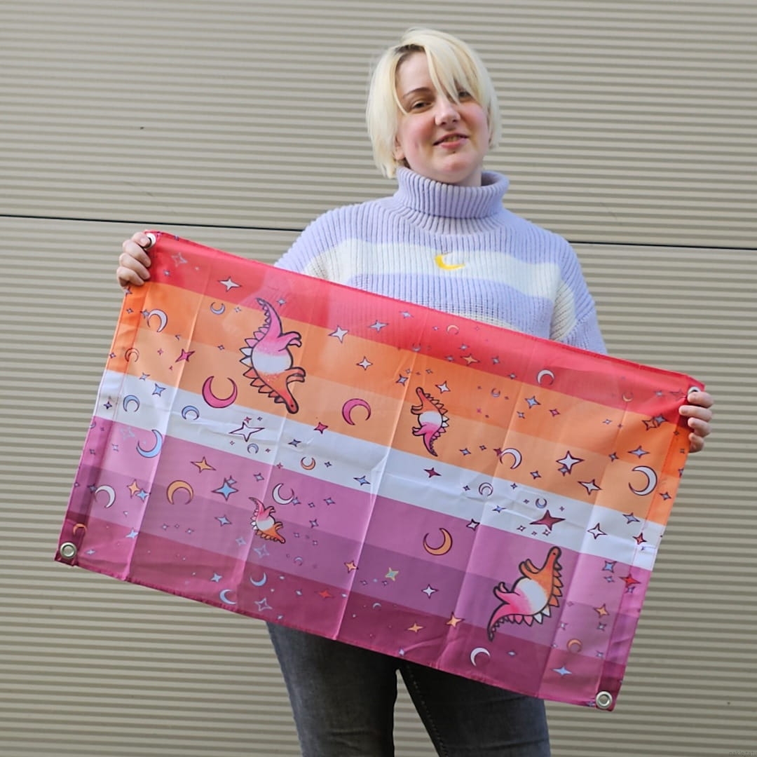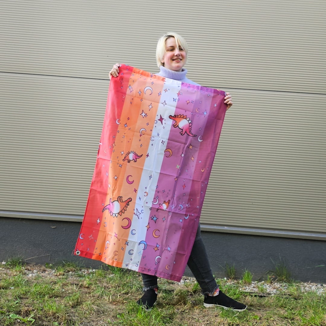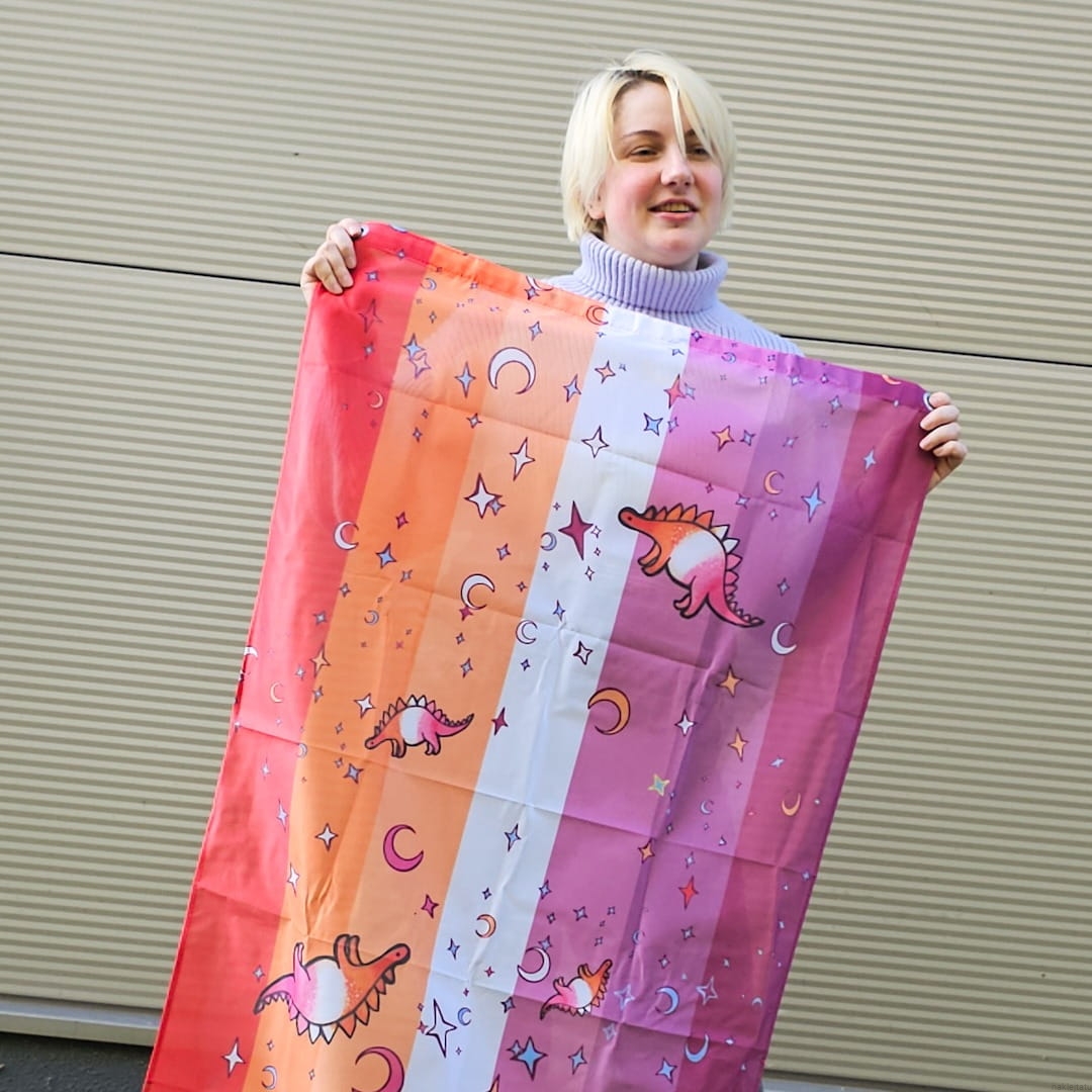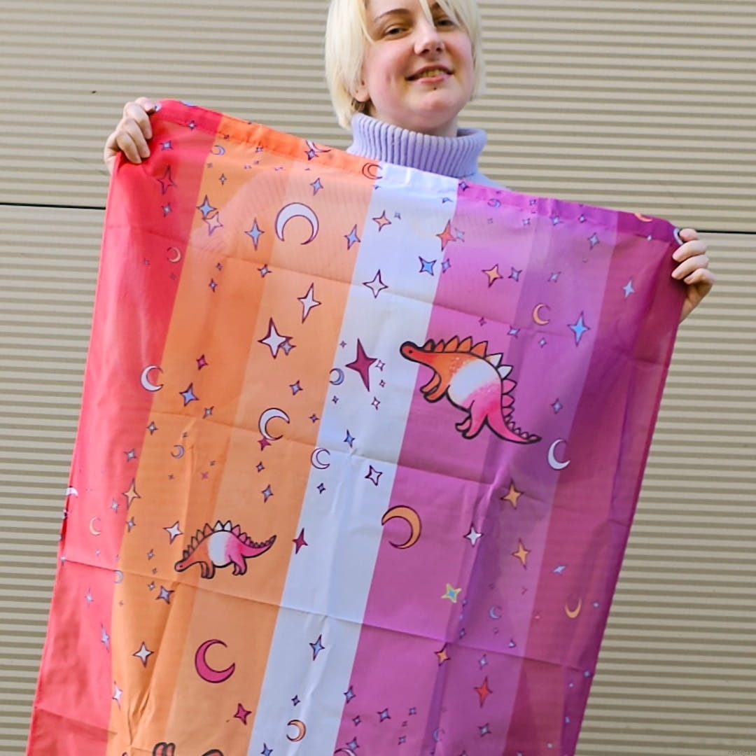 Ultra cute lesbian flag with lesbosauruses- lesbian stegosauruses.