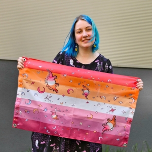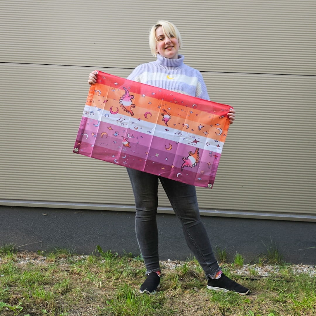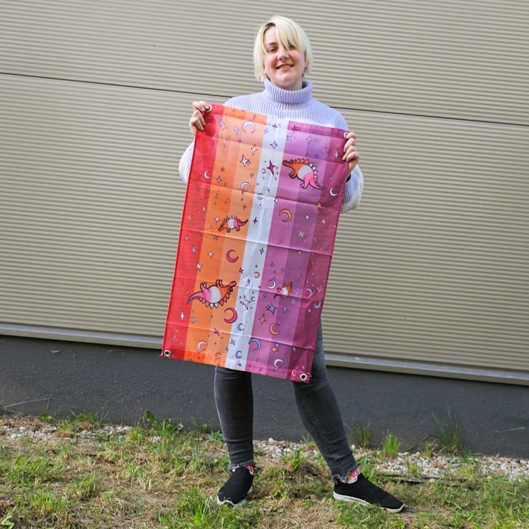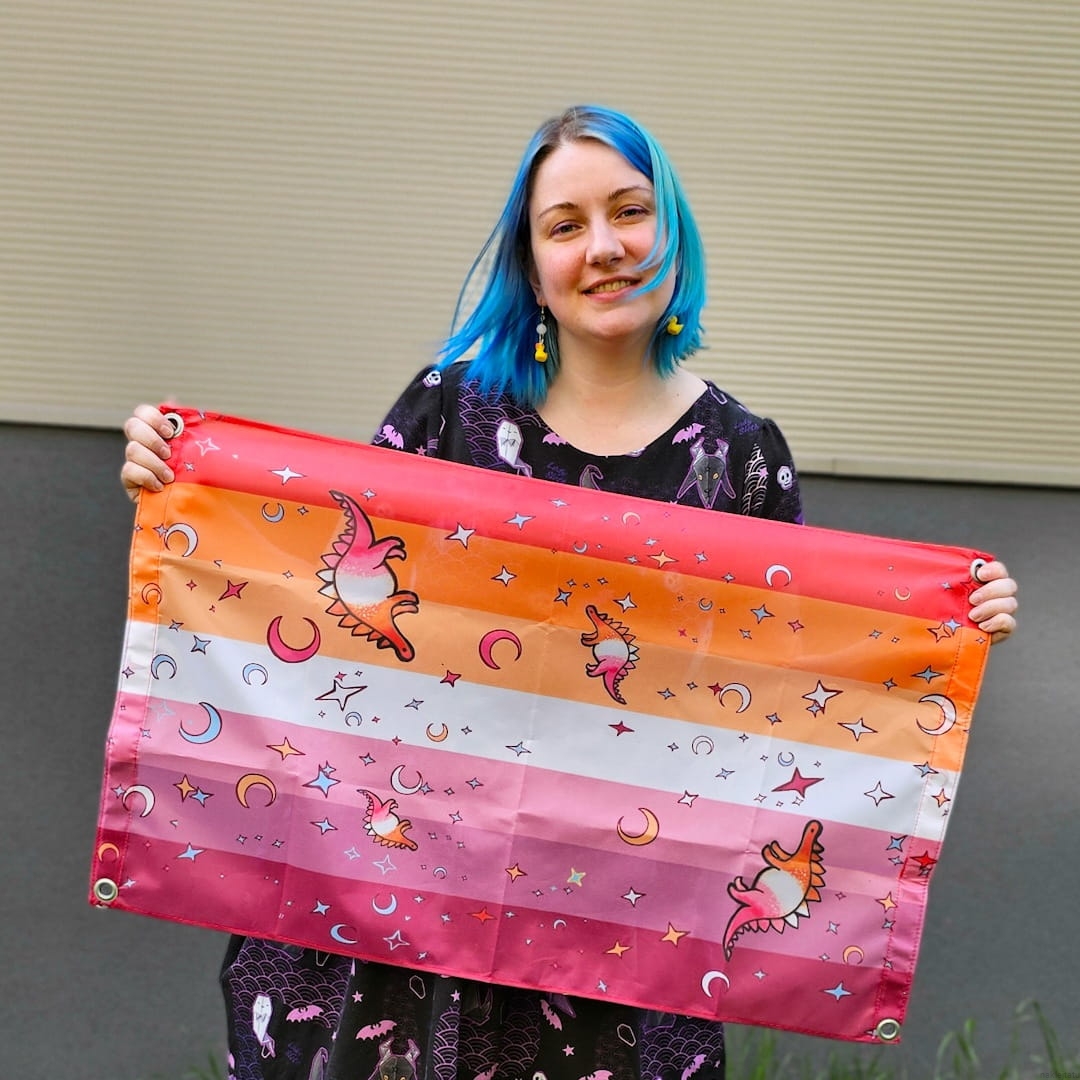 Ultra cute lesbian flag with lesbosauruses- lesbian stegosauruses.