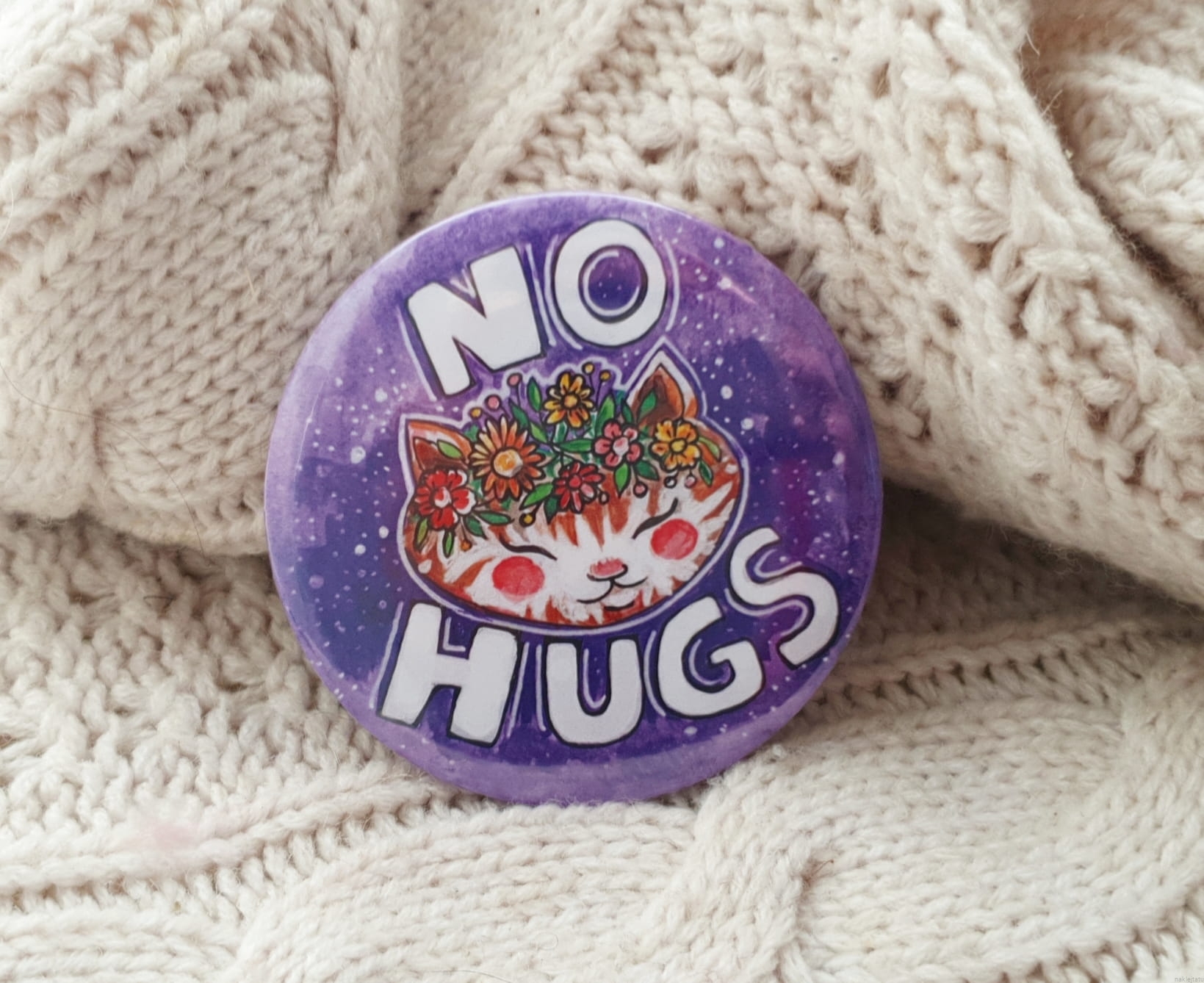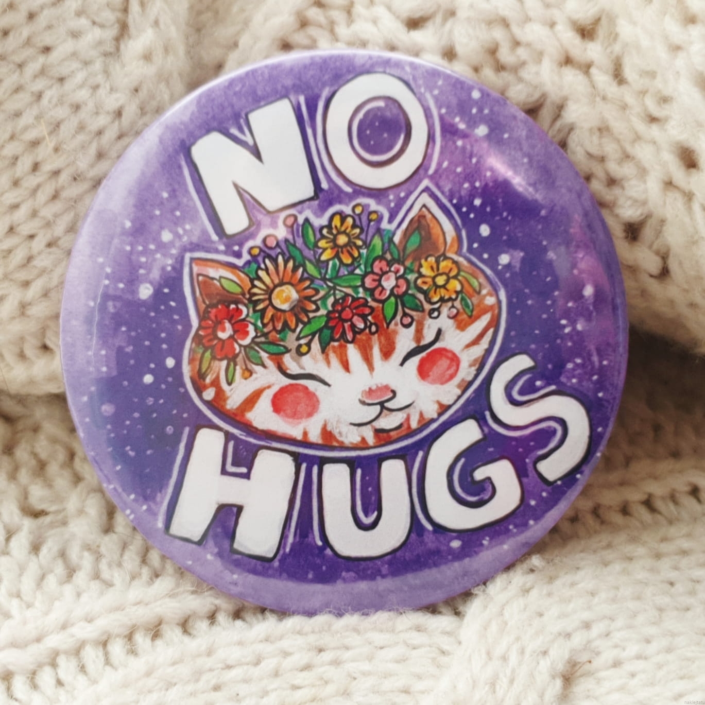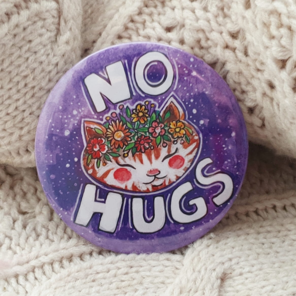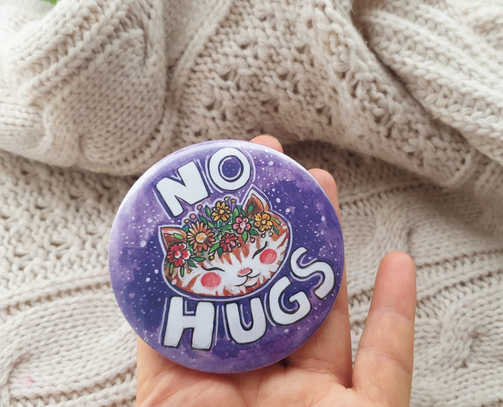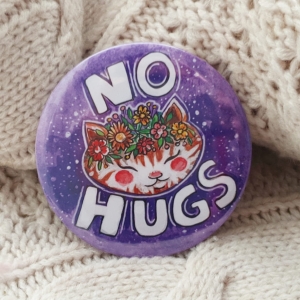 Big (75 mm/2,95 inch) button for everyone who wants to make their message cute and clear: no hugs, means NO HUGS.