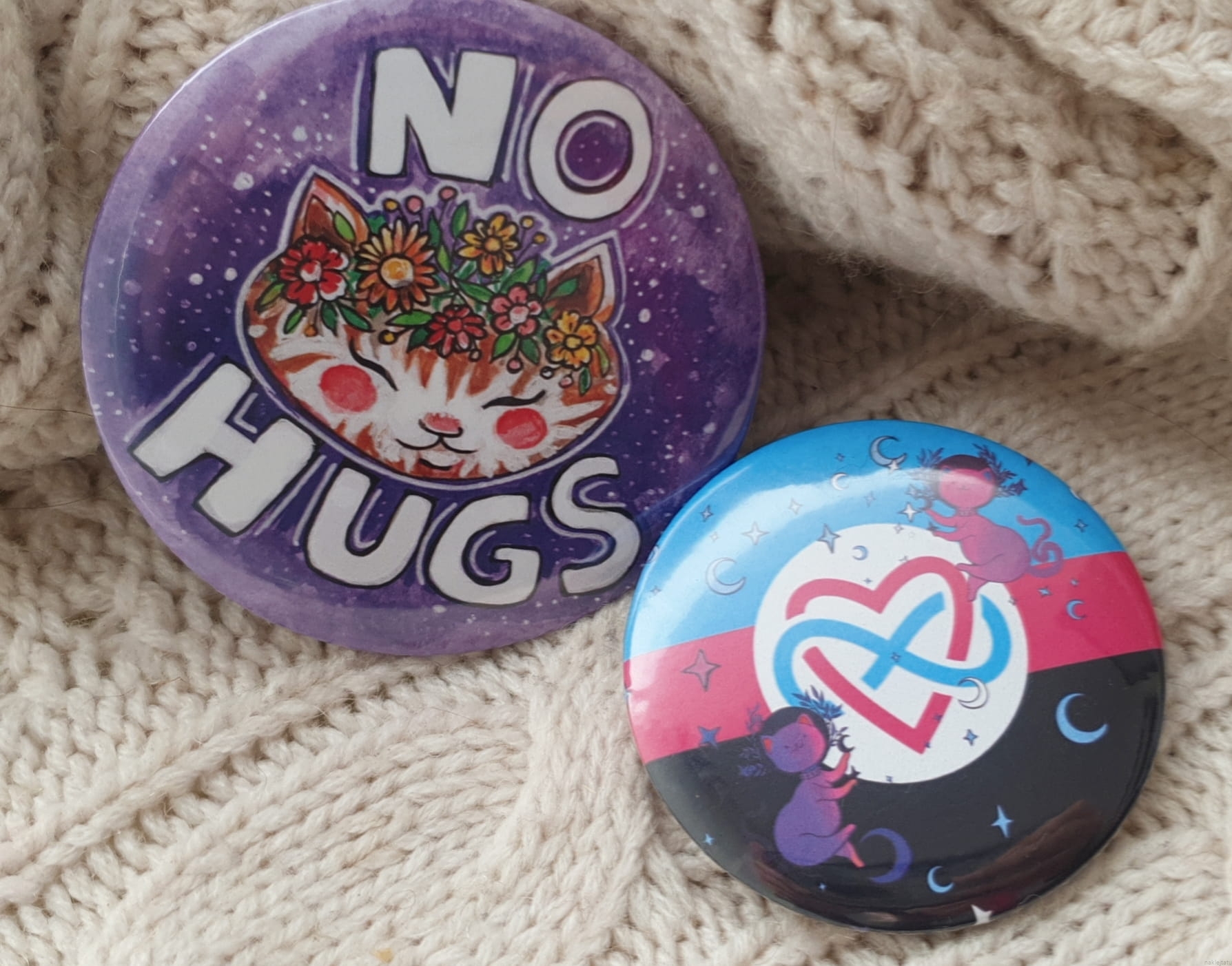 All my metal pin back buttons are sturdy and weatherproof (they don`t like being submerged in water tough). Designs are created by me, printed, and assembled by a small polish company.