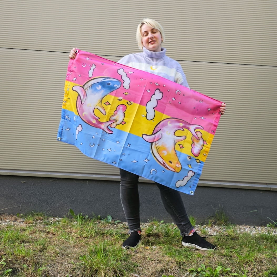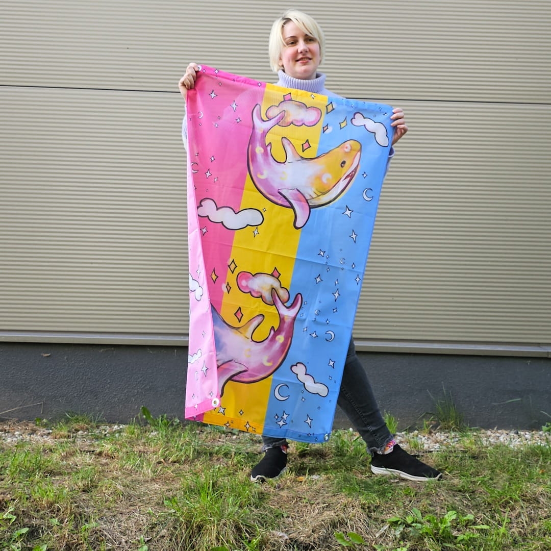 Pansexual flag with sharks will look amazing anywhere!