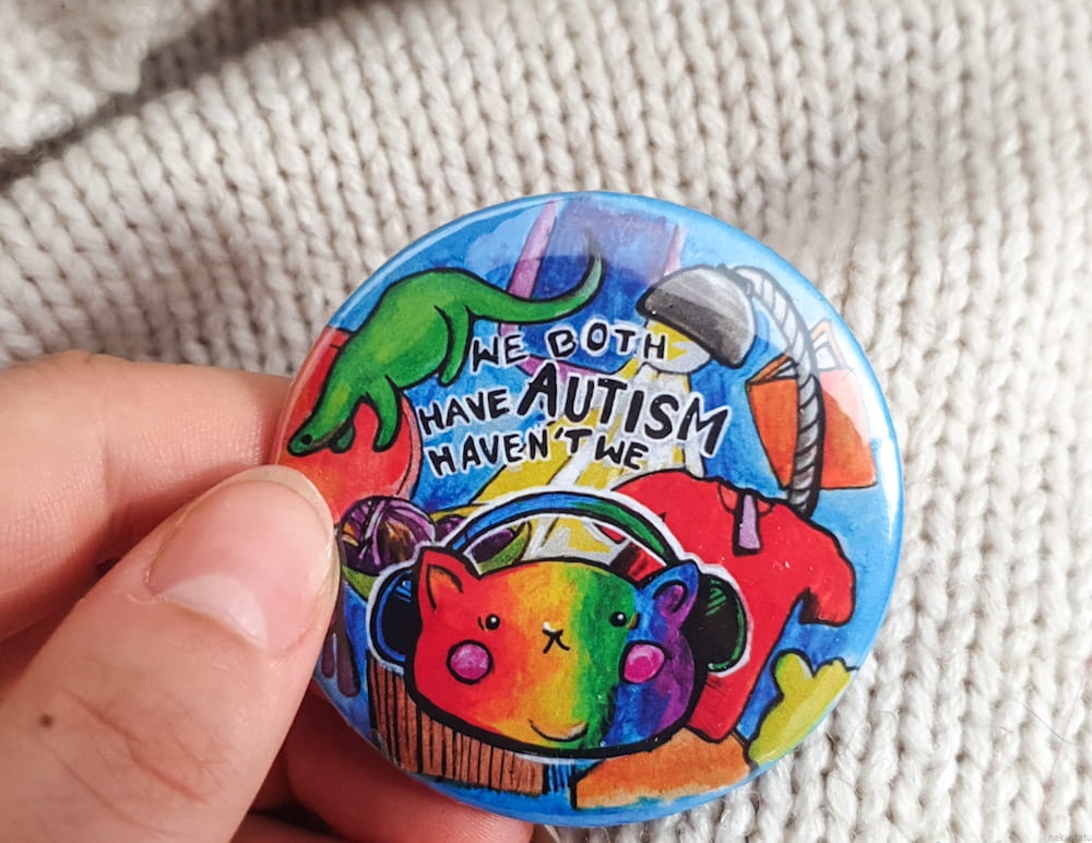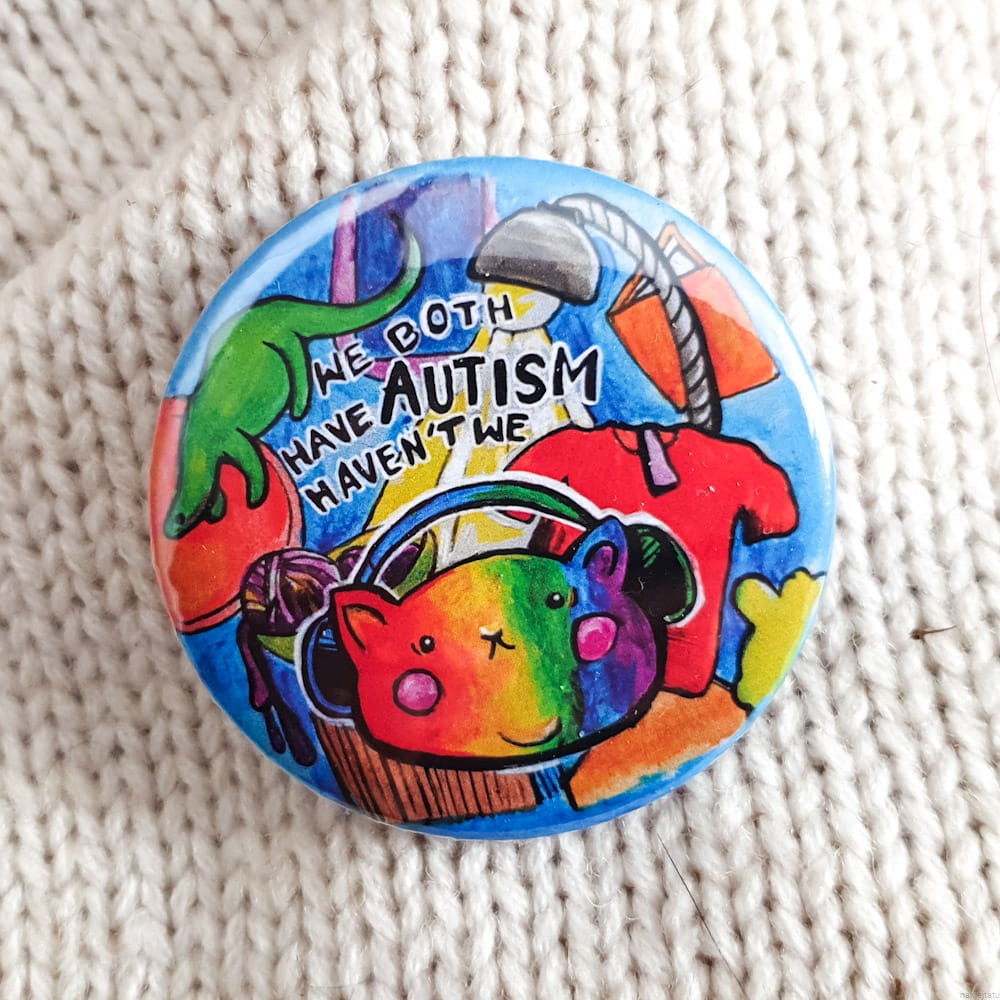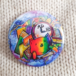 All my metal pin back buttons are sturdy and weatherproof (they don`t like being submerged in water tough). Designs are created by me, printed, and assembled by a small polish company.