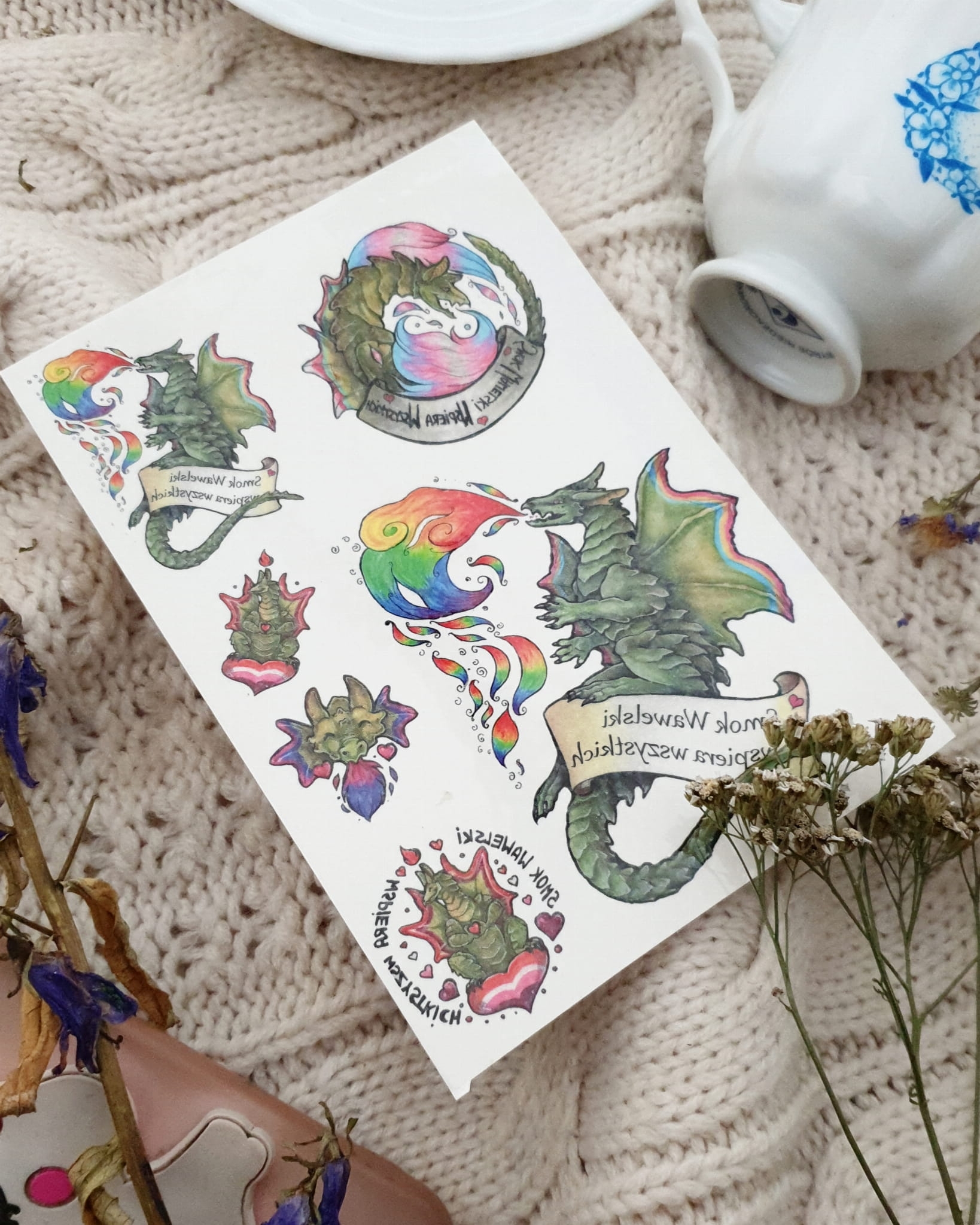 Rainbow Wawel dragon - stickers and tattoos