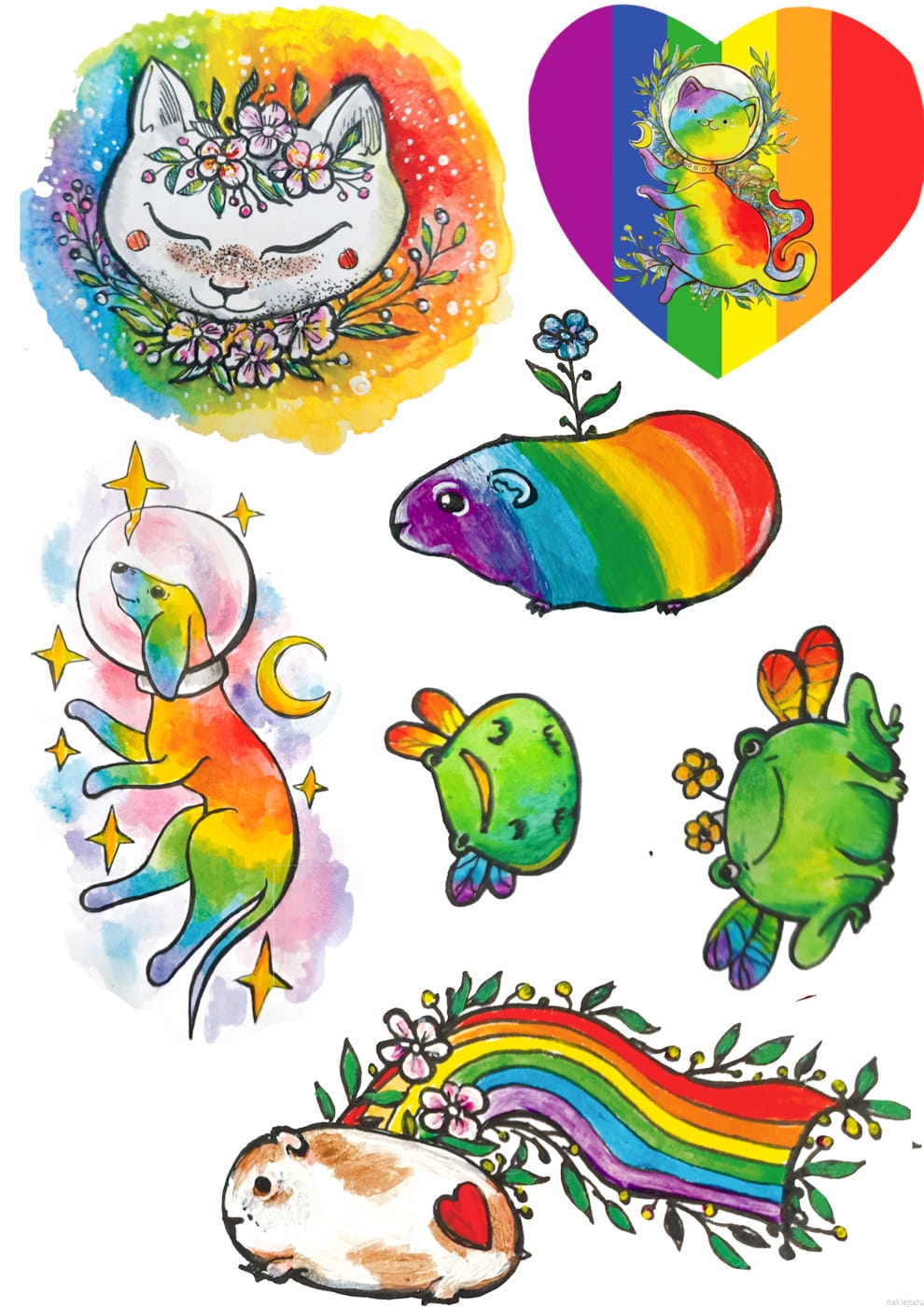 Rainbow animals - stickers and temporary tattoos