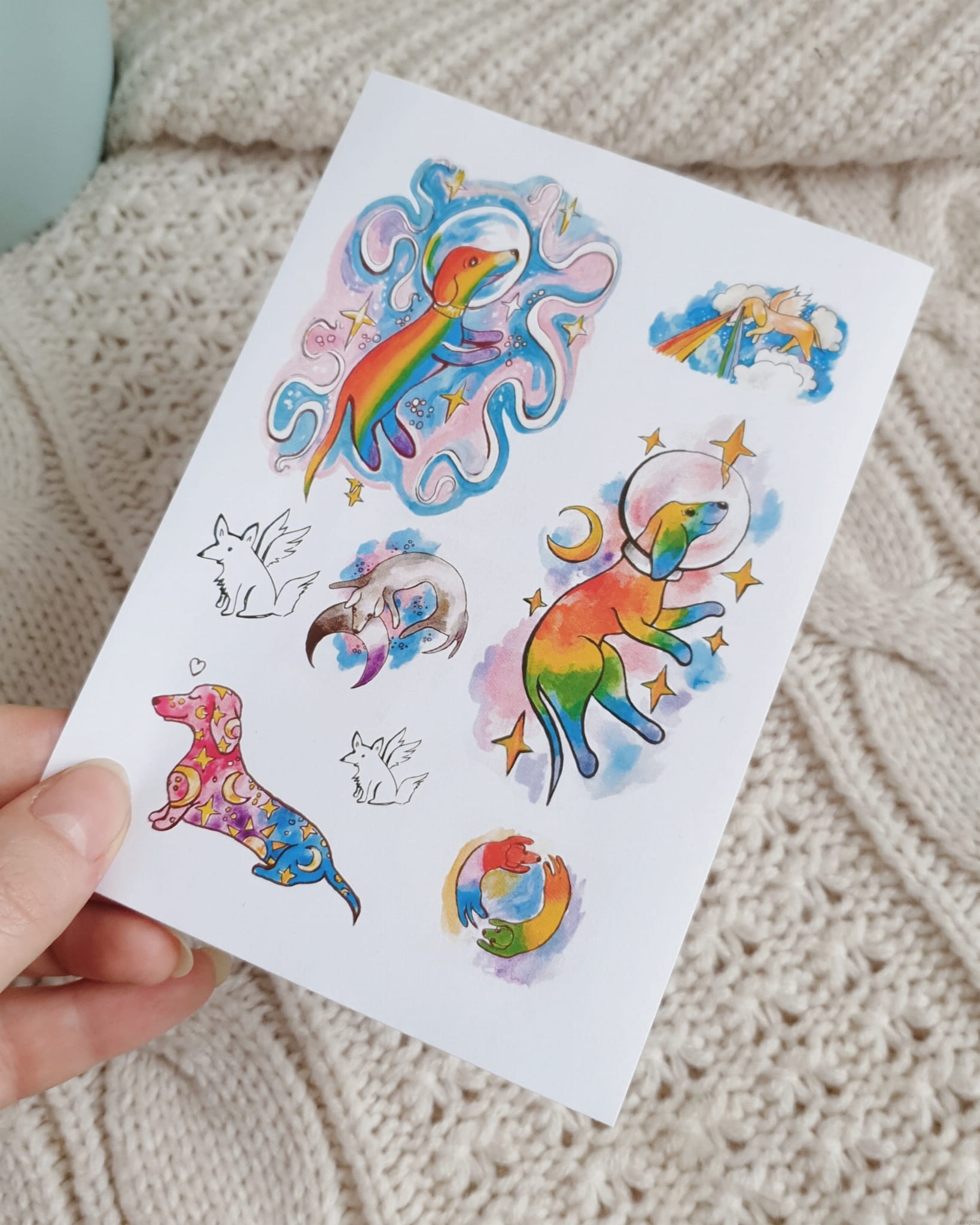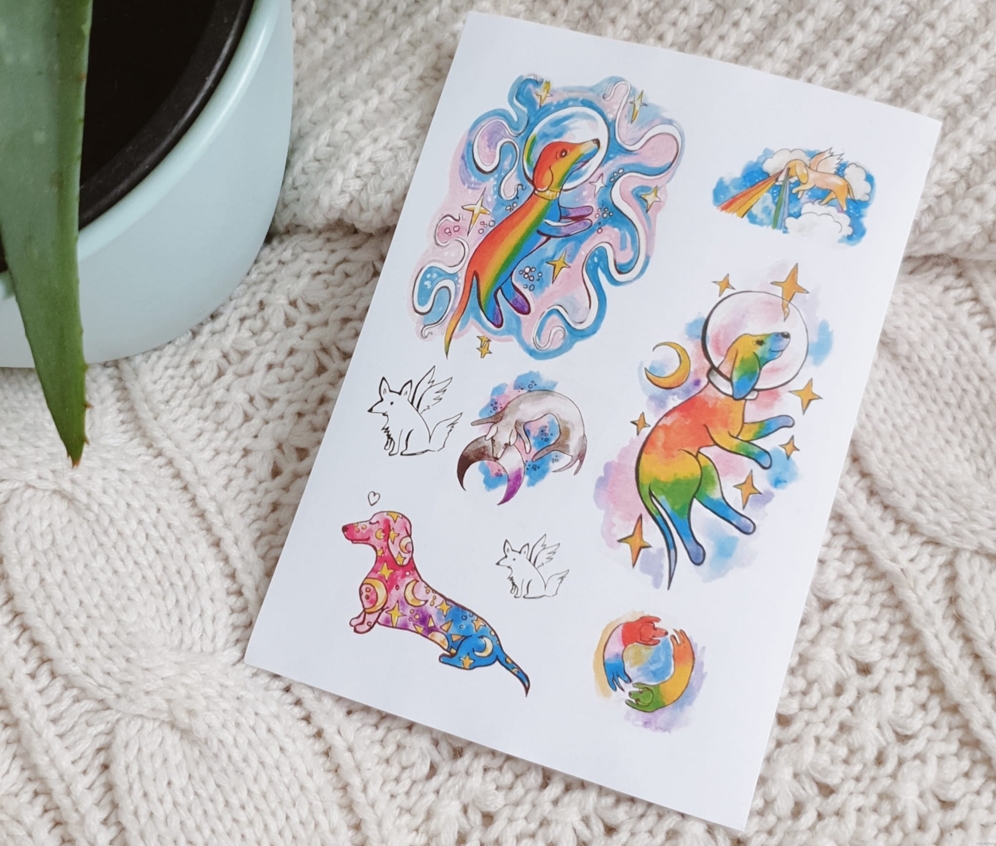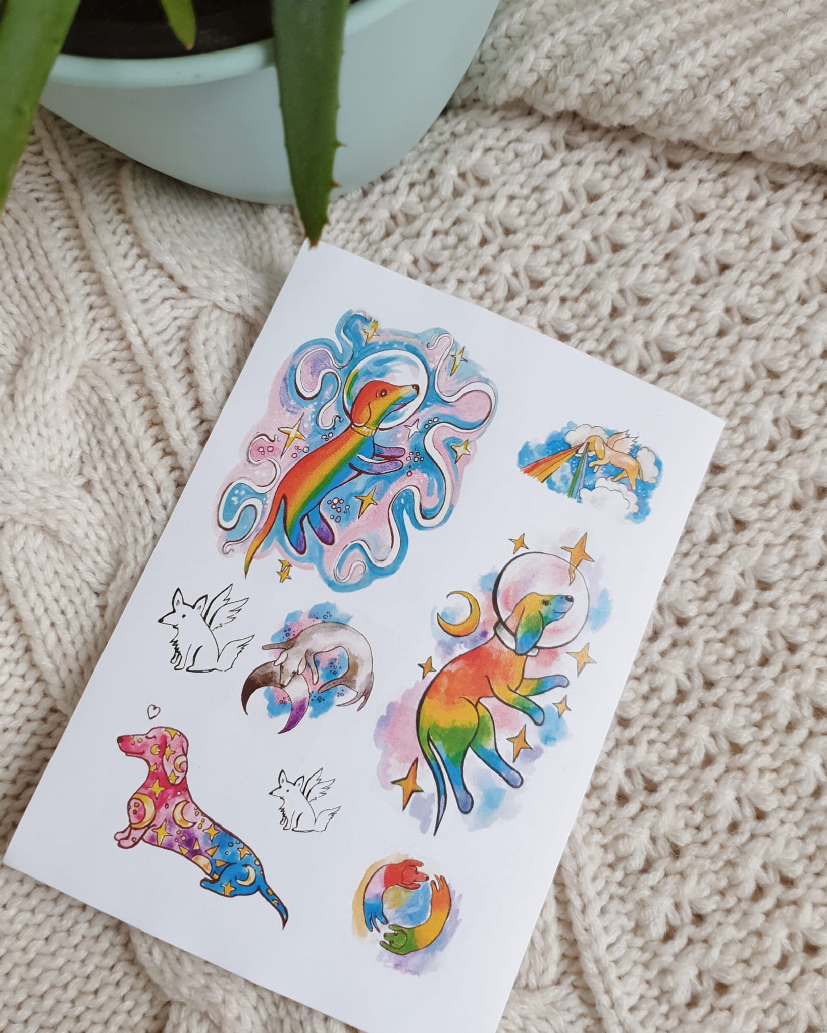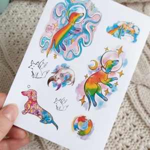 Rainbow dogonauts - stickers and temporary tattoos