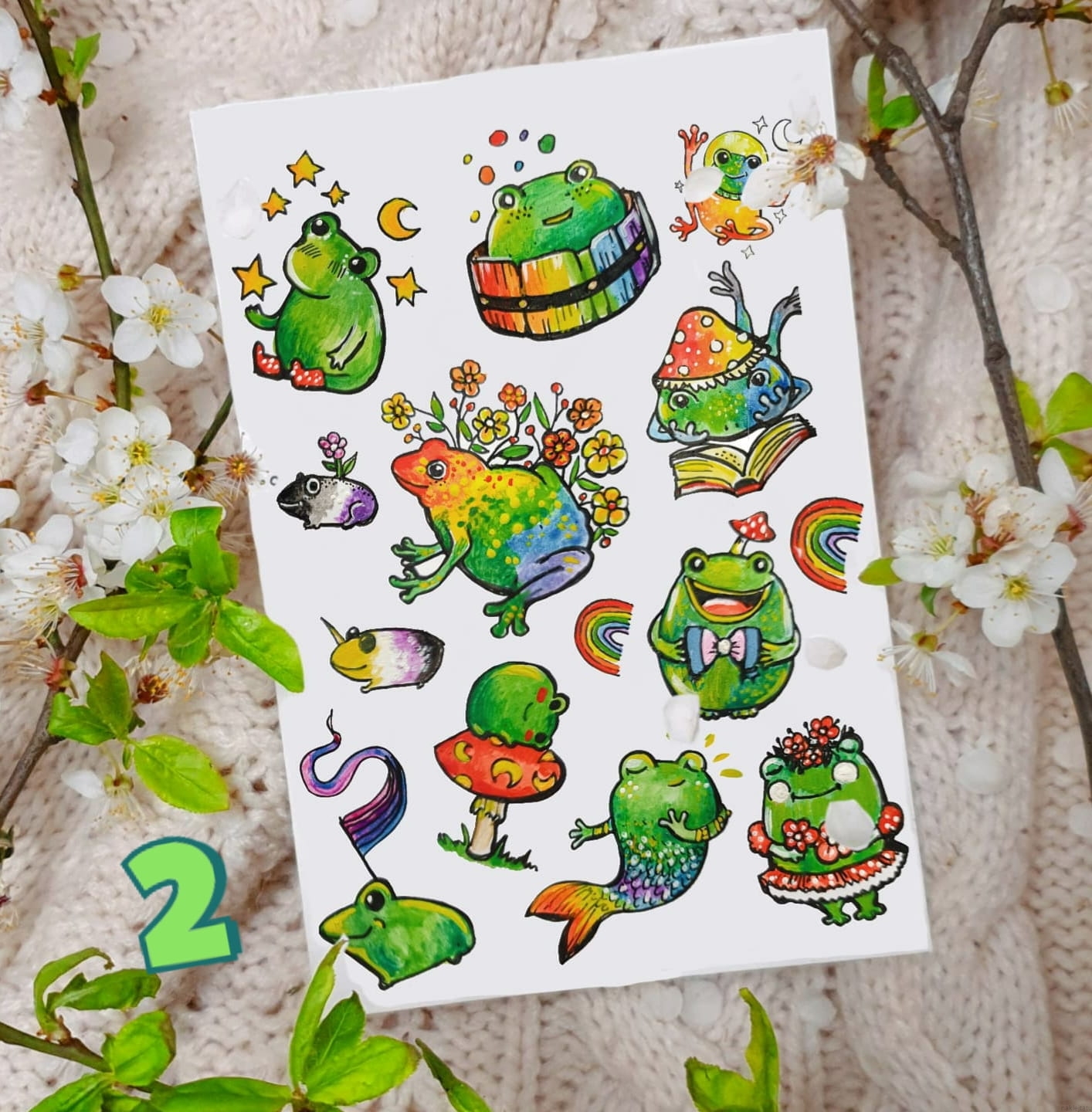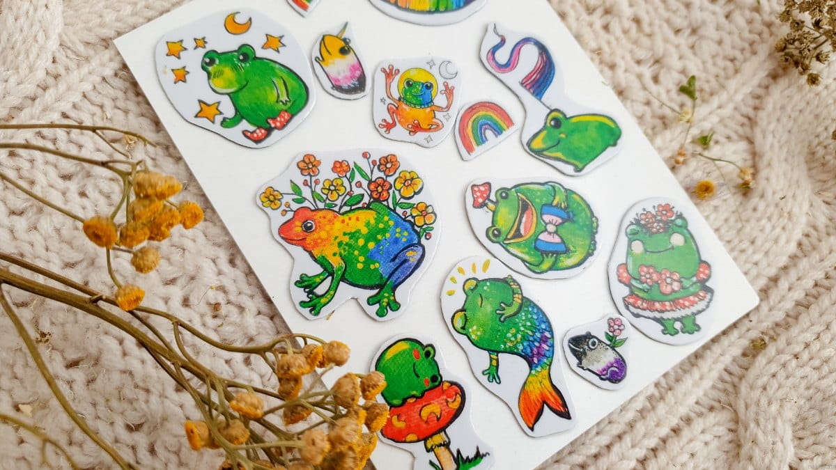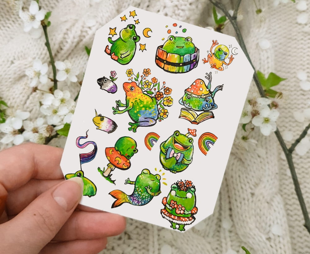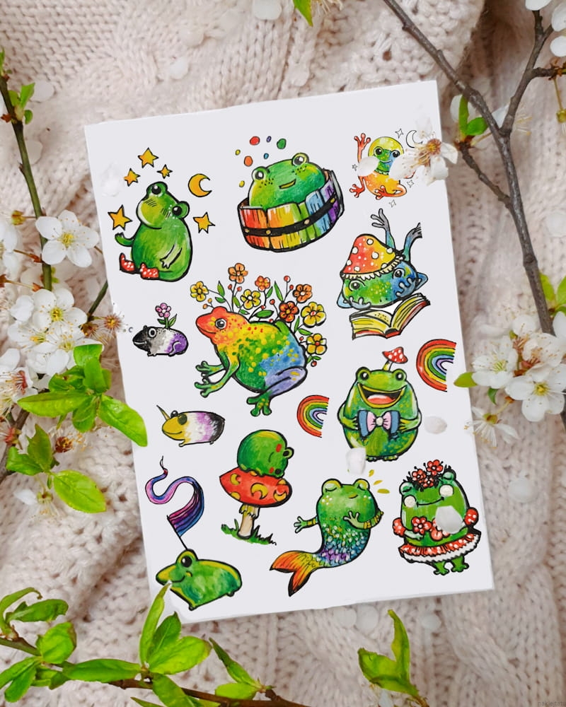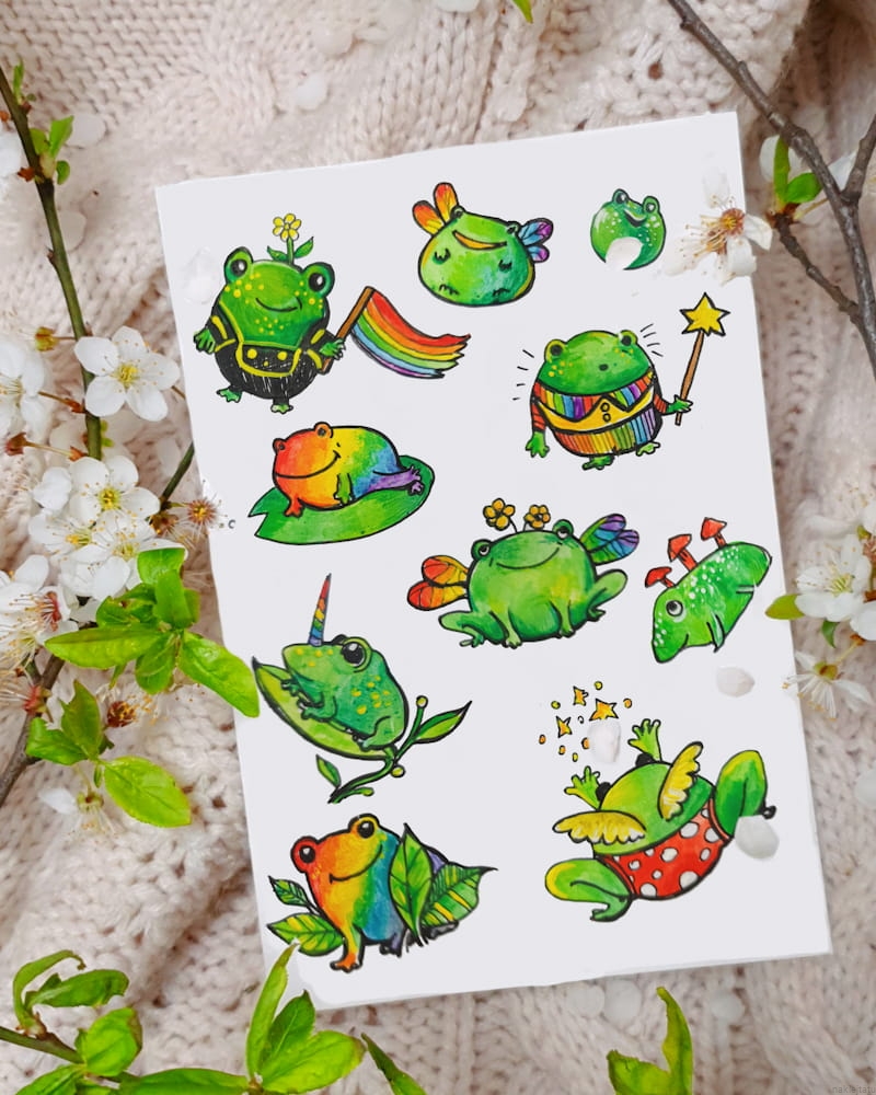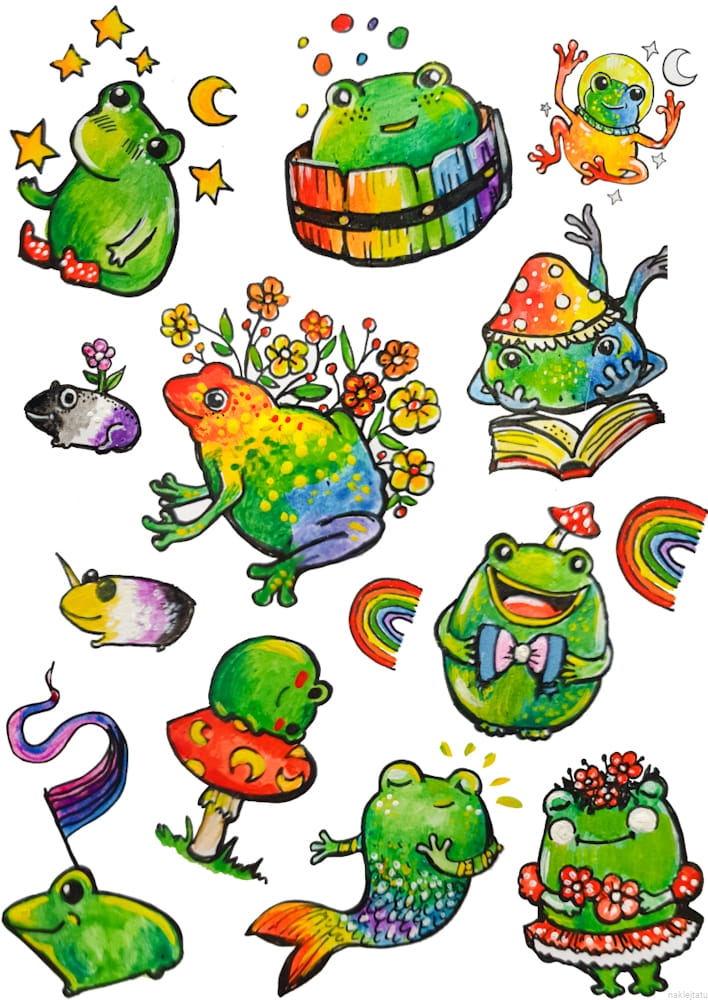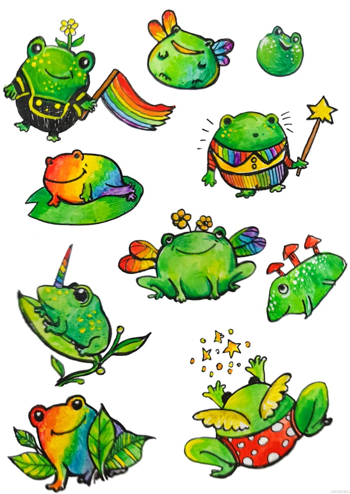 Rainbow frogs - stickers and tattoos