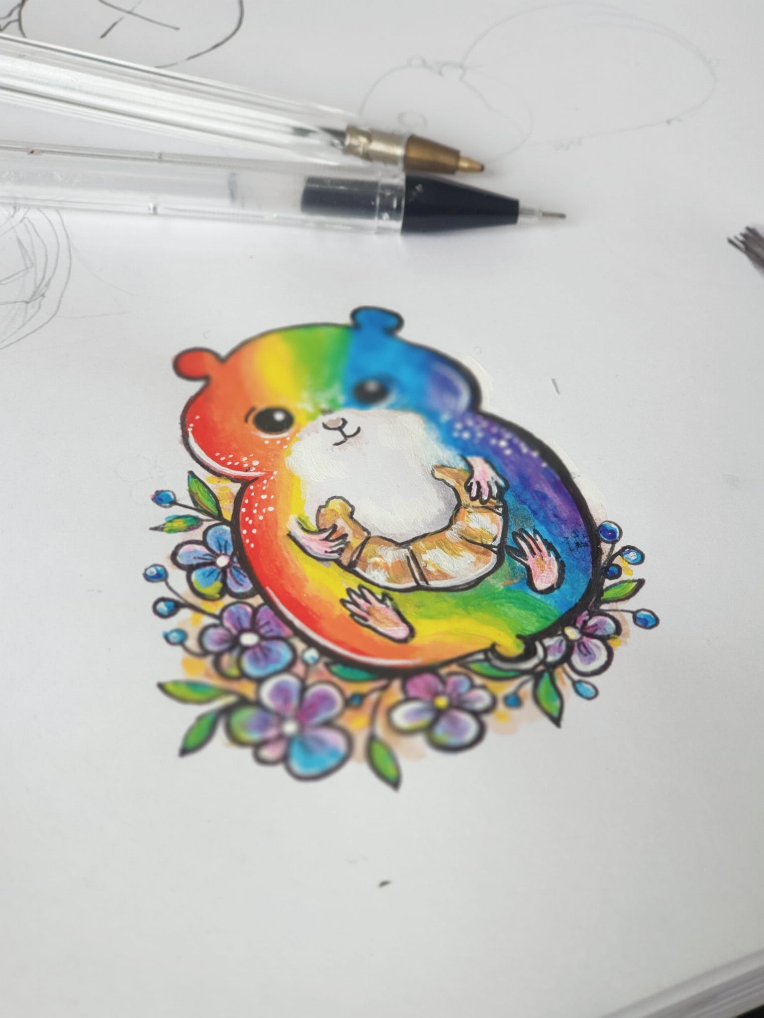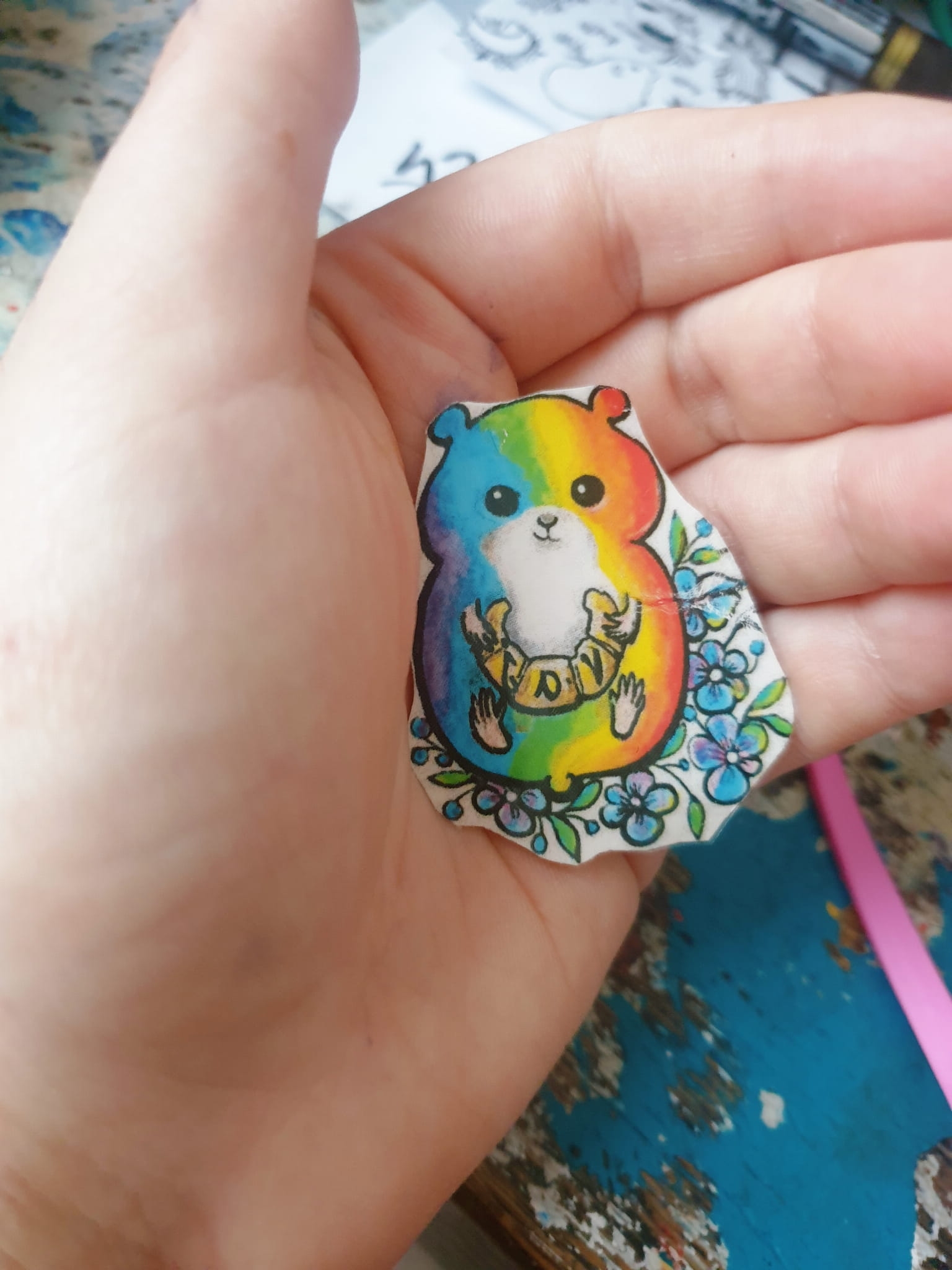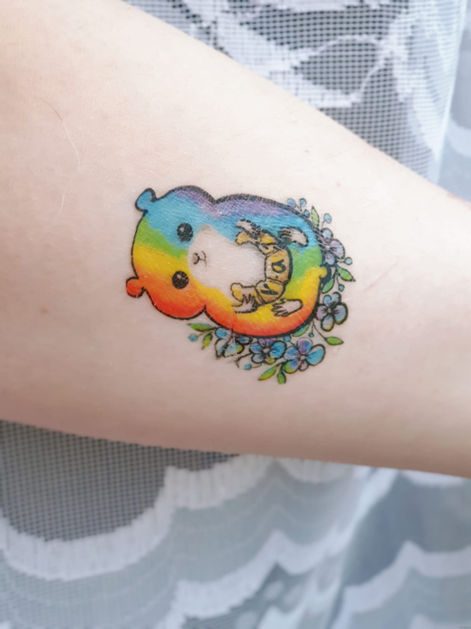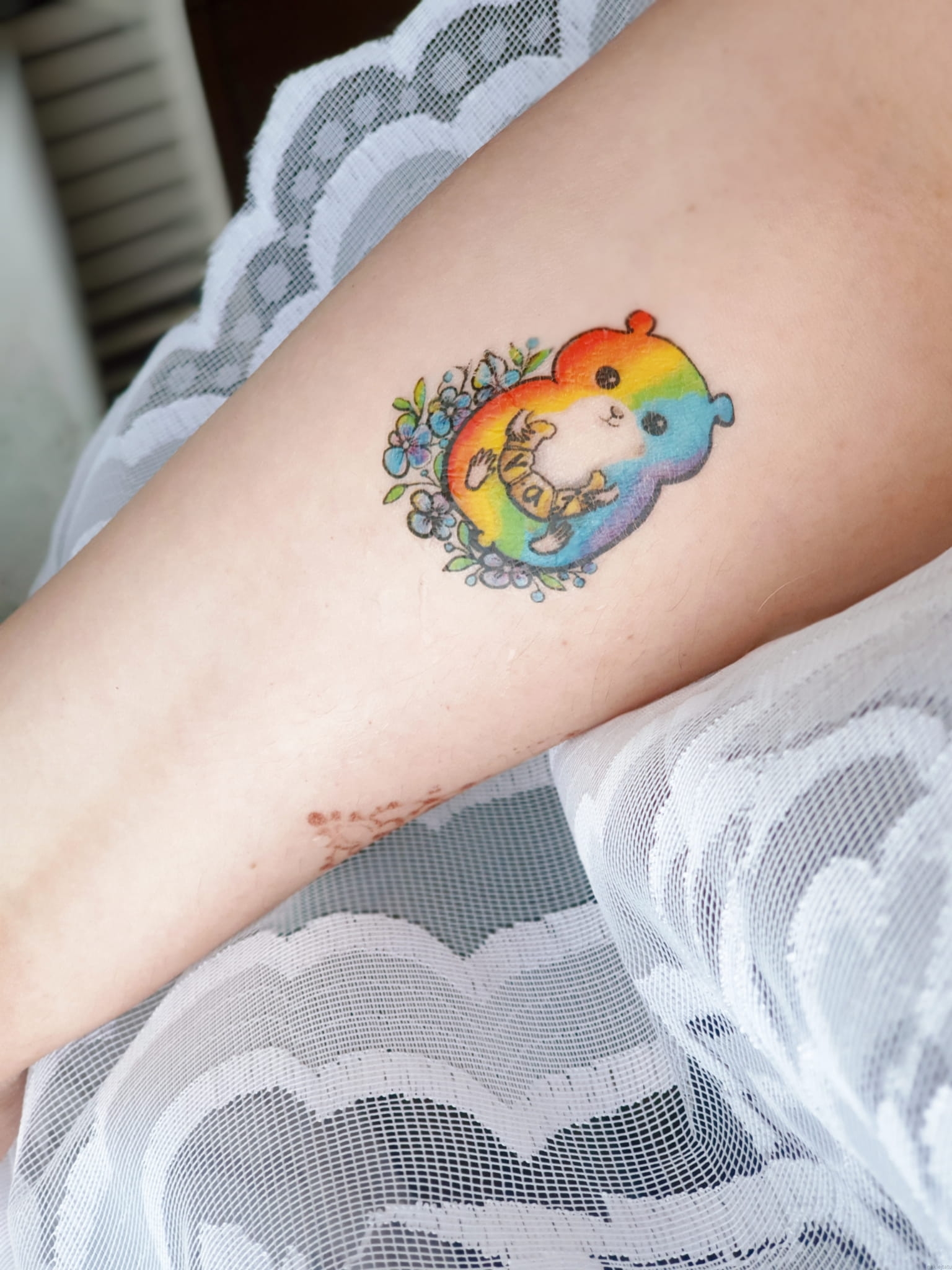 Do you want to get a super fab rainbow tattoo with a cute hamster?