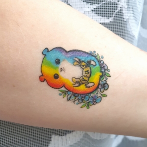 Try something cute, rainbowy, and temporary - my temporary tattoos or stickers! In just 30s cute creatures can make your forearm, phone case, or laptop much more cute and fun.