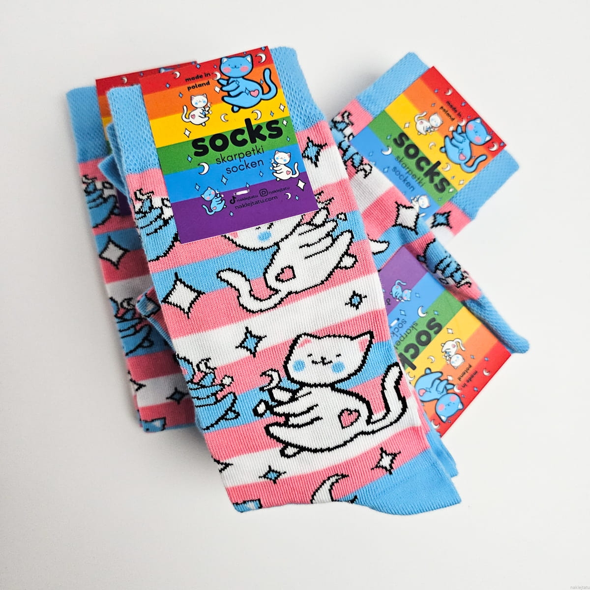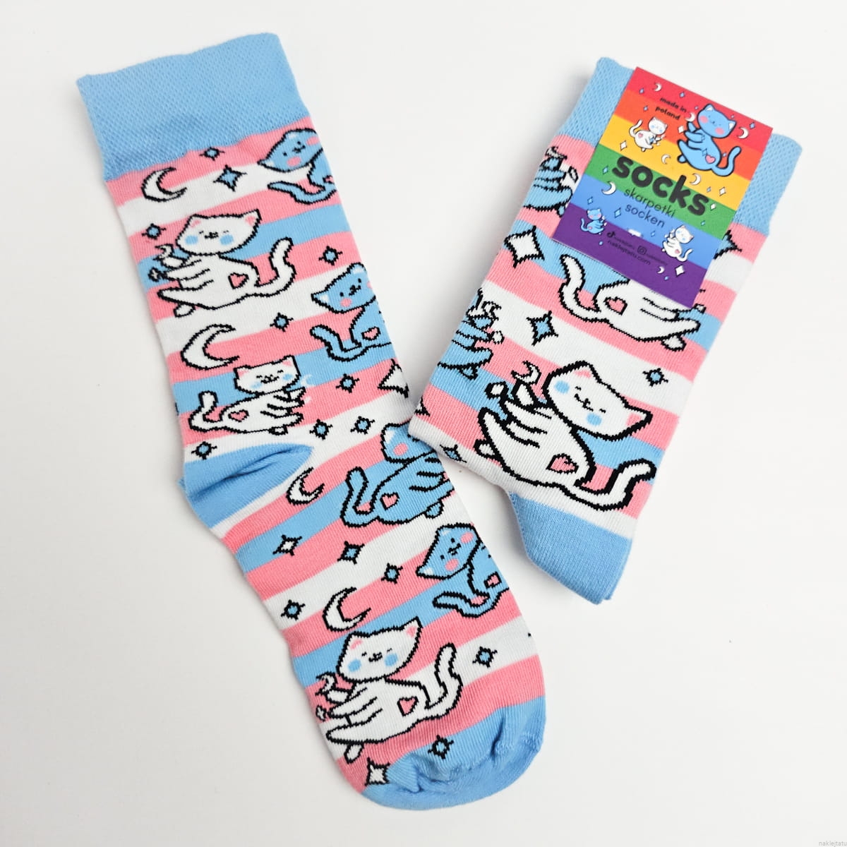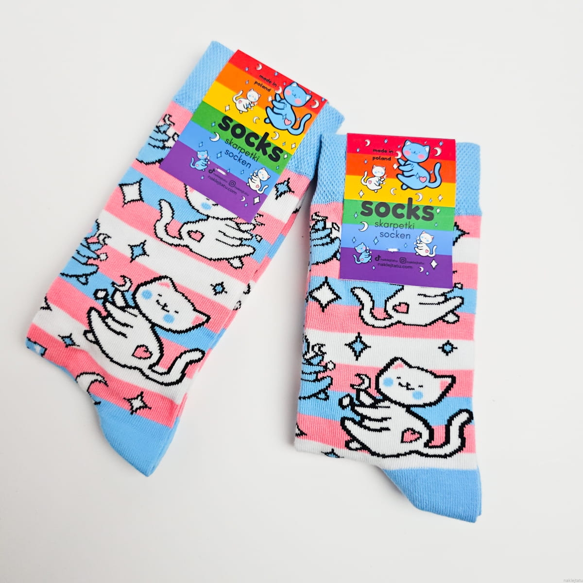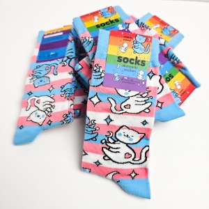 Trans pride socks with cats