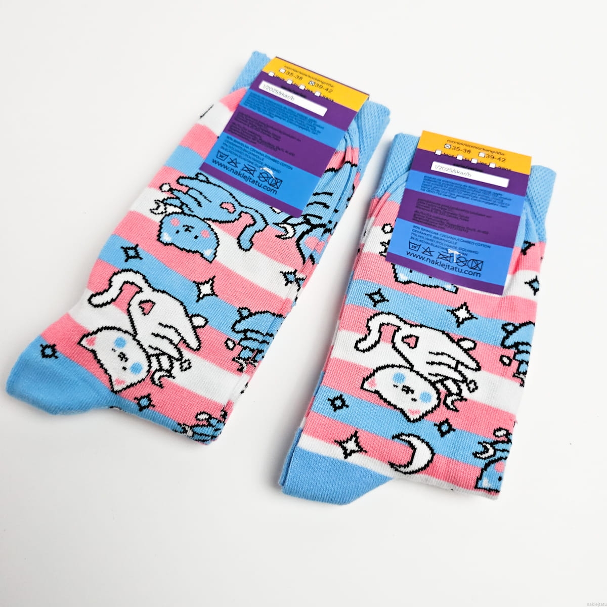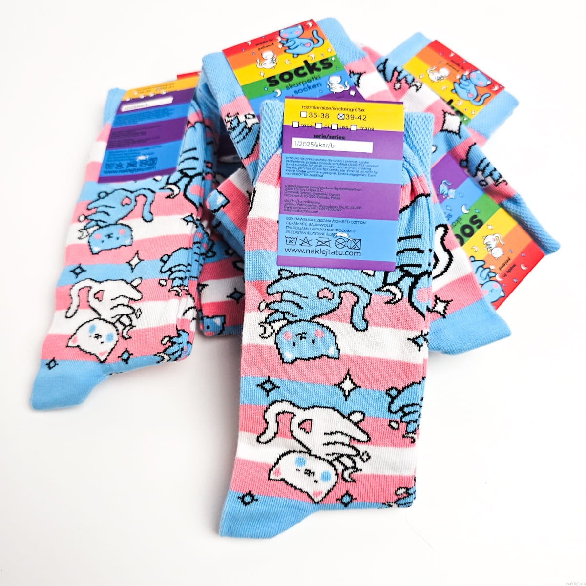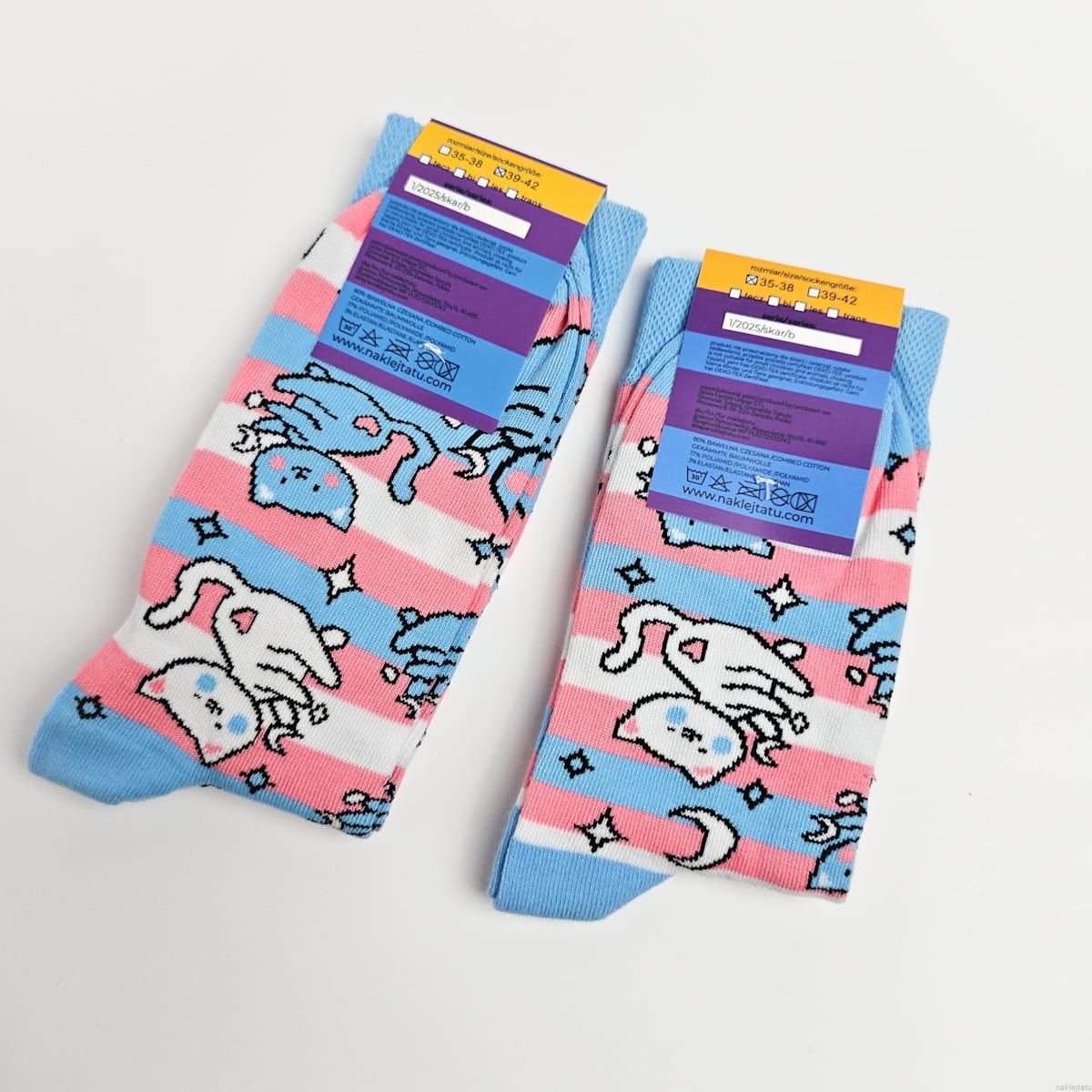 Trans pride socks with cats