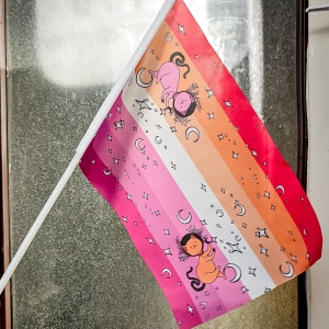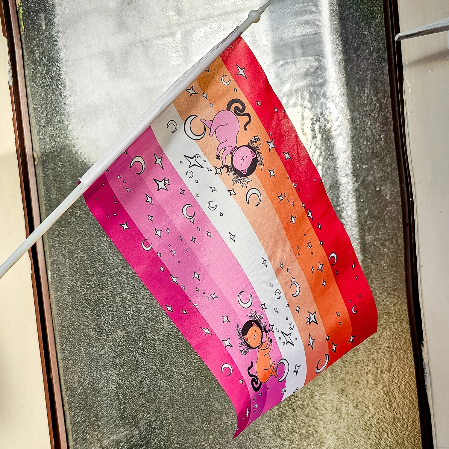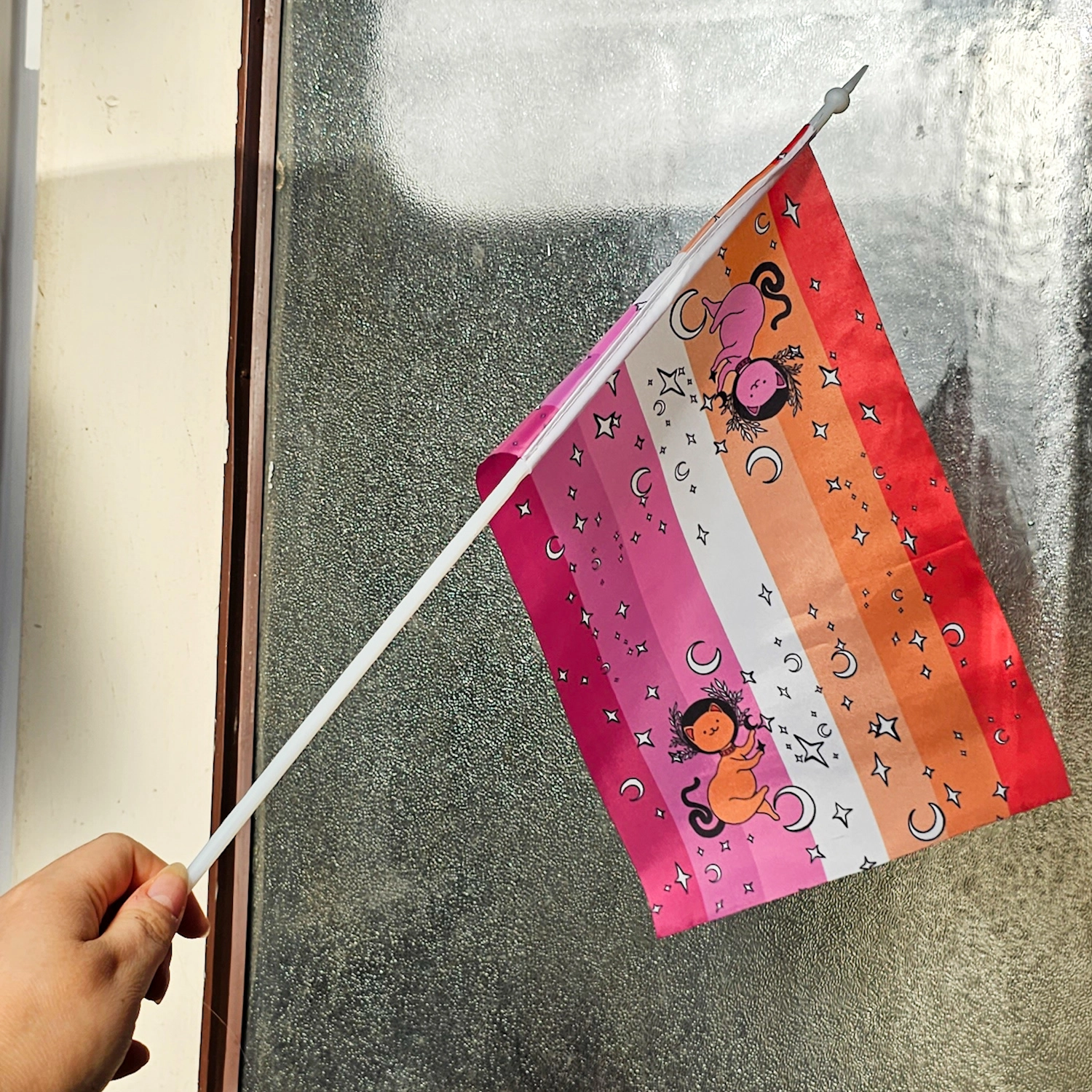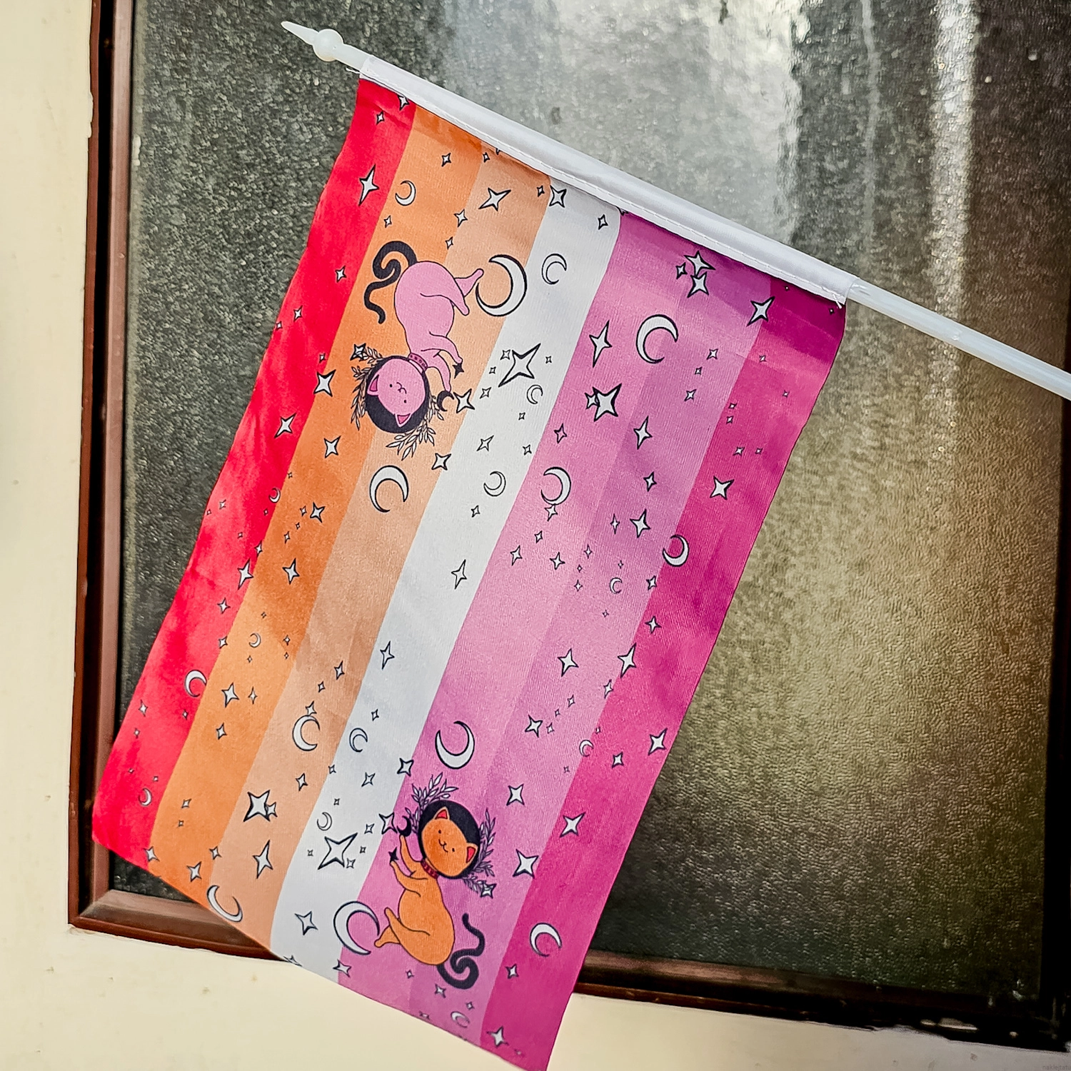 Brakuje Ci czegoś małego i kolorowego? Przygarnij materiałową choragiewkę z cudnym tęczowym kotem.