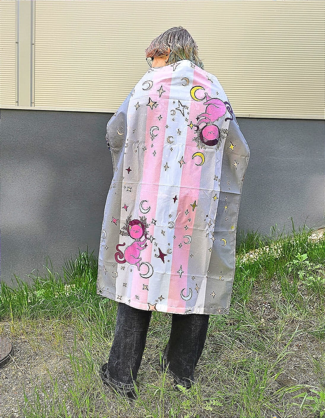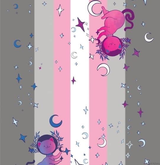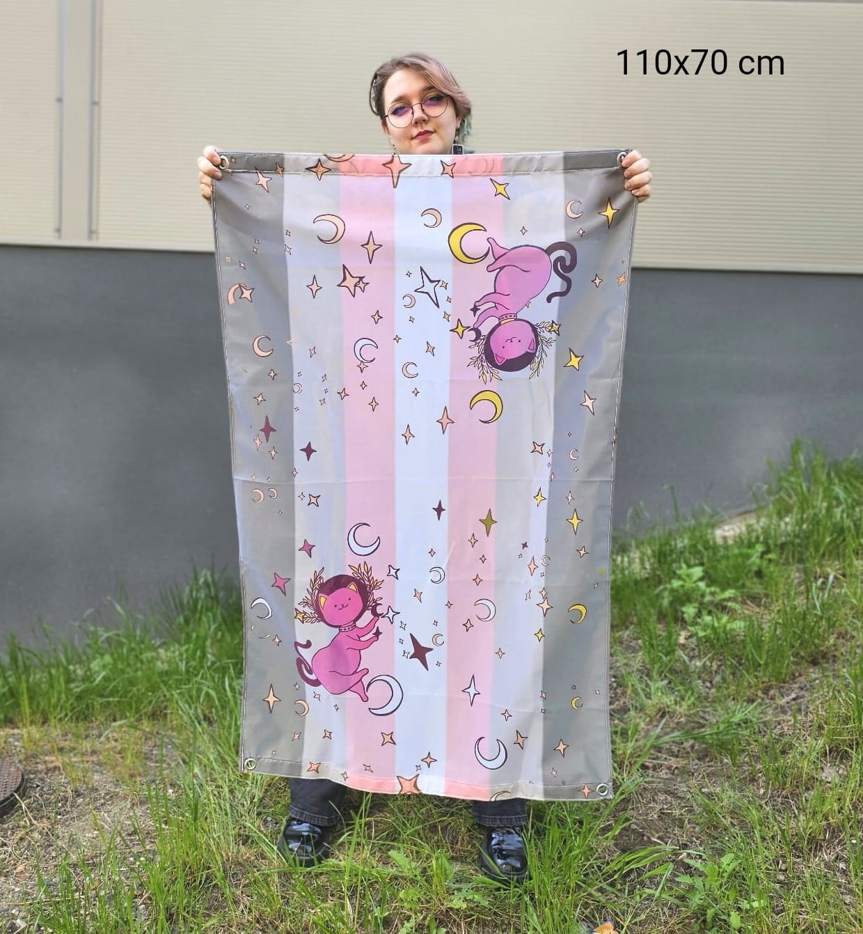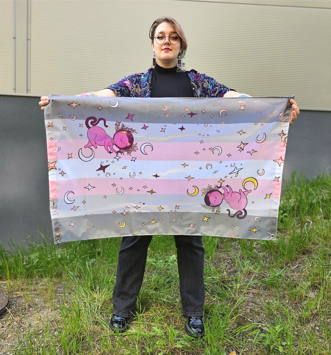 Poznaj idealną flagę dla kogoś kto identyfikuje się jako demigirl i kocha koty. Flaga zaprojektowana, drukowana i szyta w Polsce przez naklejtatu, projekt, w którym działają tylko queerowe i nieneurotypowe osoby.