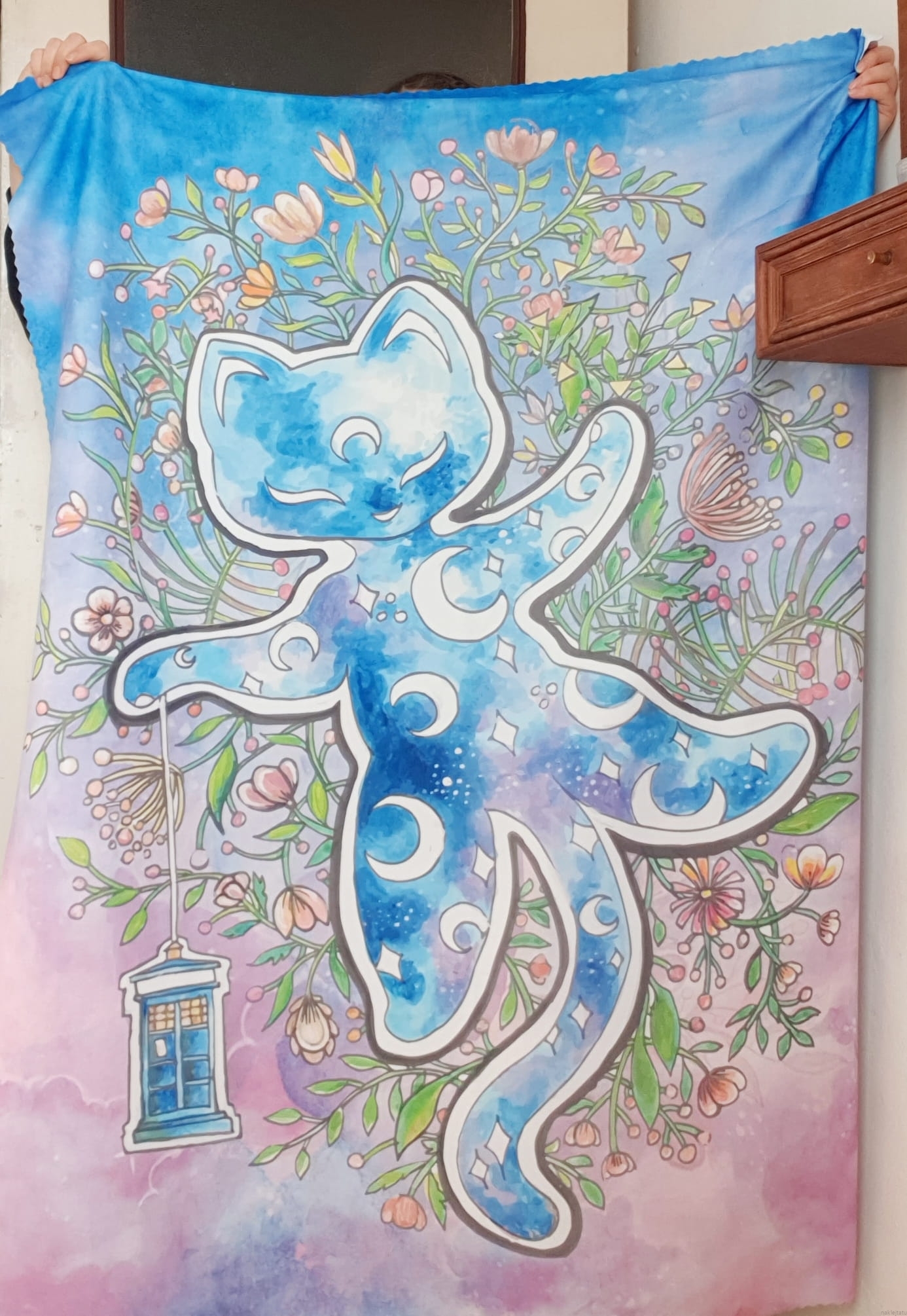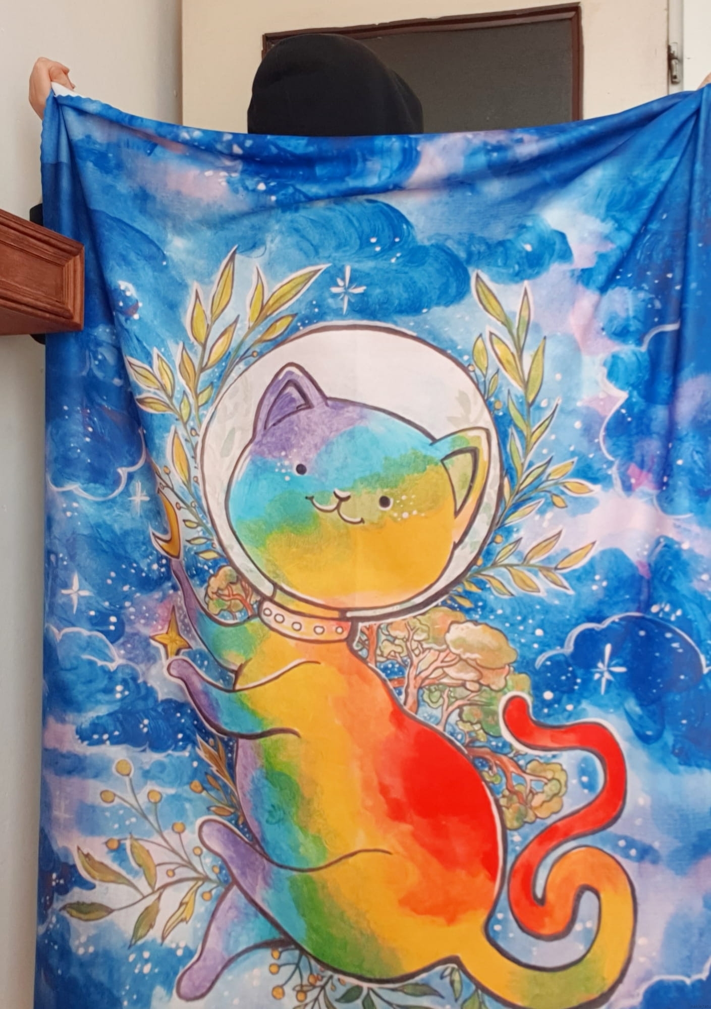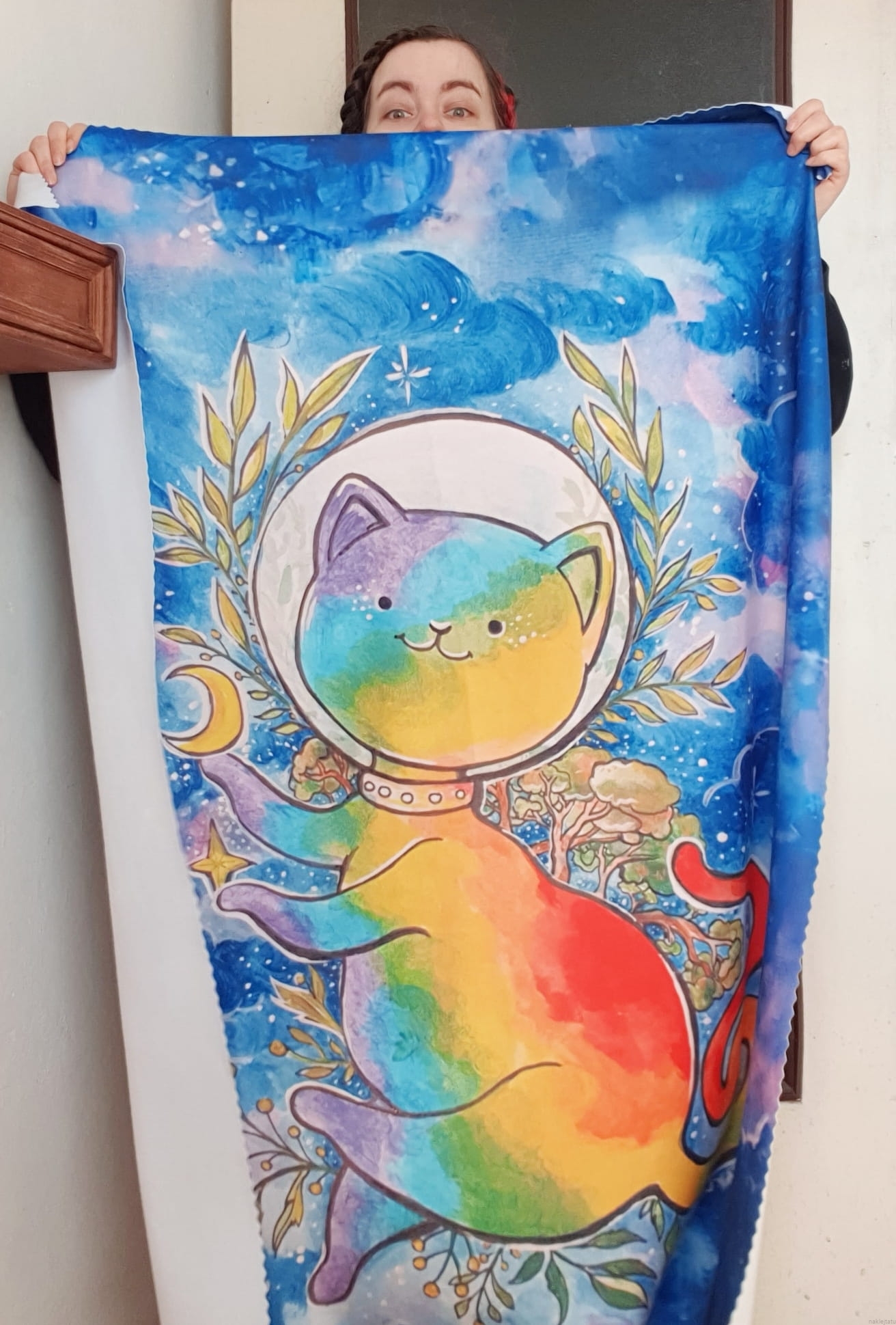 Zrobiło się zimno i szukasz czegoś w pięknych kolorach co cię przytuli i ogrzeje? Wybierz puchaty kocyk z przepięknym kotem astronautą na tle nocnego nieba. Koc wykonany został na podstawie mojej oryginalnej ilustracji (która była okładką magazynu MLEM, a konkretniej numeru o kotach w kosmosie).