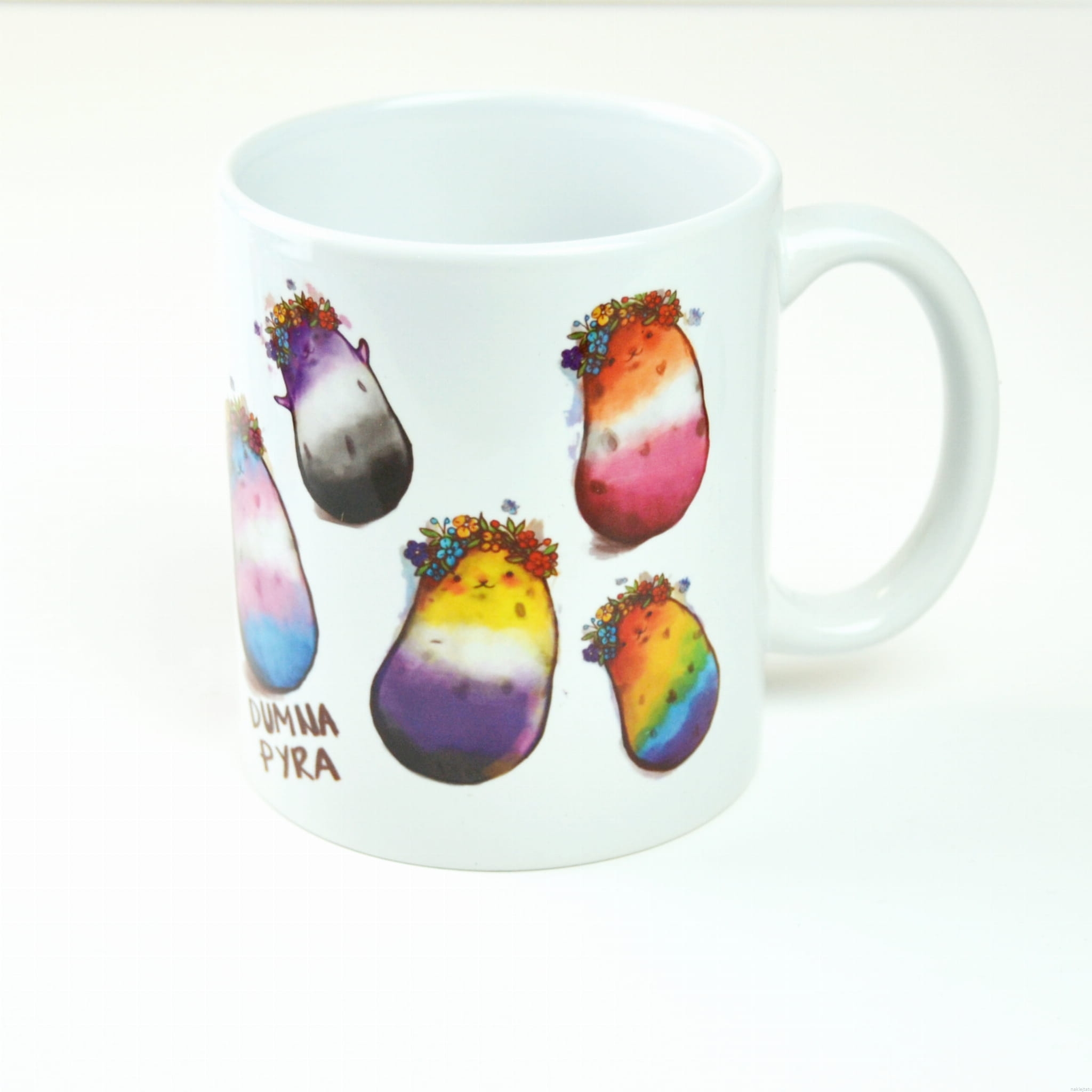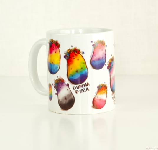 Kubek z tęczowymi ziemniakami