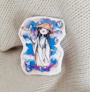 Twój komputer, butelka z wodą albo walizka są smutne i puste? Naklej dużą naklejkę z kocim Xie Lianem i pokoloruj kawałek swojego wiara!