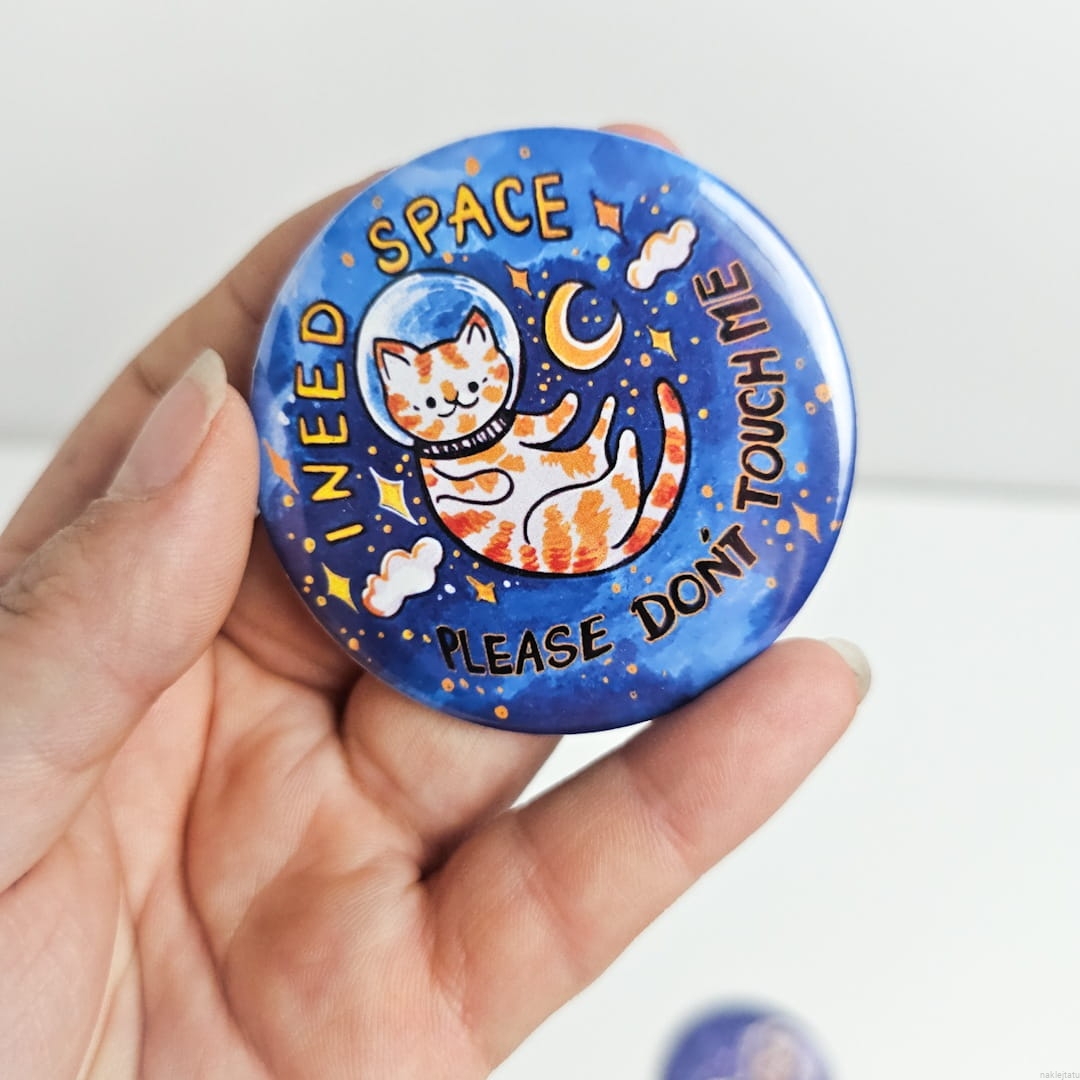 Czasami ludzie staja zbyt blisko albo dotykają cię bez pytania i masz tego kompletnie dosyć? Dla takich osób jak ty powstała taka przypinka. Niektóre osoby potrzebują duzej ilosci przestrzeni często, inne czasami po prostu mają dosyć. Jeżeli chesz pokazać co czujesz ta przypinka będzie dla ciebie idealna.