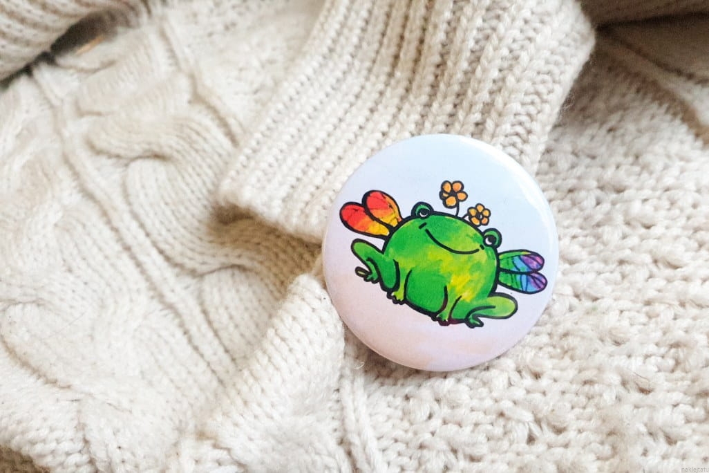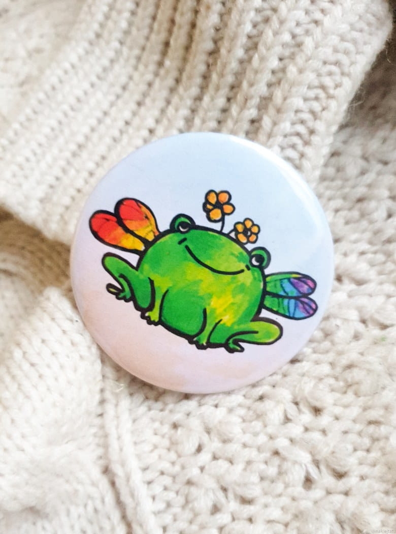 Tęczowe żaby przypinki szukają domu!