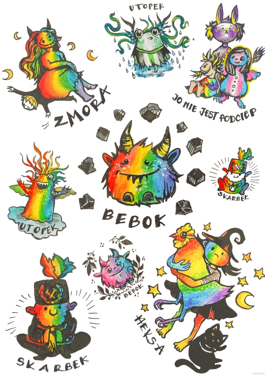 W tym zestawie znajdziesz naklejki i tatuaże inspirowane legendami i opowieściami ze Śląska - regionu z którego pochodze i w którym mieszkam.